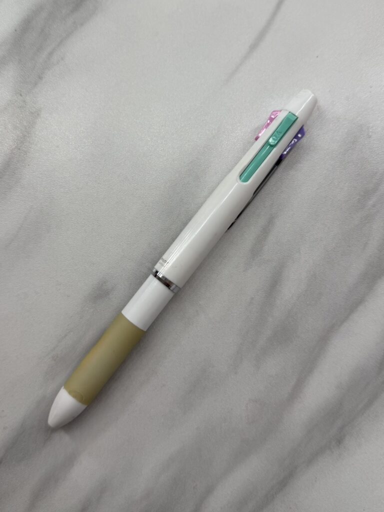 4色を1本のボールペンにまとめることができるので、この1本を持っておけば色々な教科のノートに使えてとても便利!ペンを何本も持ち歩かなくてもいいので、筆箱の中もスッキリするところが好き☆こカラーを全部パス テルカラーのインクになっているから、ノートを書くときの気分も上がる♡
