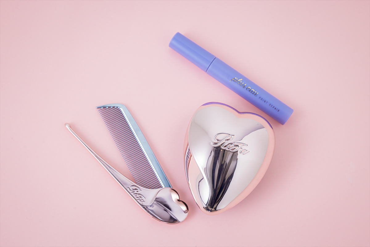 リファのブラシを使って、髪全体をしっかりまとめるよ。耳より高い位置でまとめれば元気な印象に!