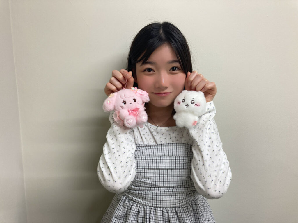 「高校生になったらいい意味のあざとい子になりたいんだよね。なんでかと言うと、あざとくできたら頑張りすぎなくてもいろいろ許されそうだし、人生ラクだなって思って。で、そういう子はちいかわを持っていそうっていうイメージがあったので、ちいかわグッズを買ってみた!そういう理由なのでちいかわに詳しくはないんだけど、ちいかわを買ったのでこれから知っていきたいし、ちいかわとともにあざとく行こうと思ってます。形から入ります(ドヤ)。でもこの計画をもんじ(ヒナノ)に話したら、リリカはそのままがいいよって言ってもらっちゃったから、もしかしたらあざと計画はやめるかも(笑)。