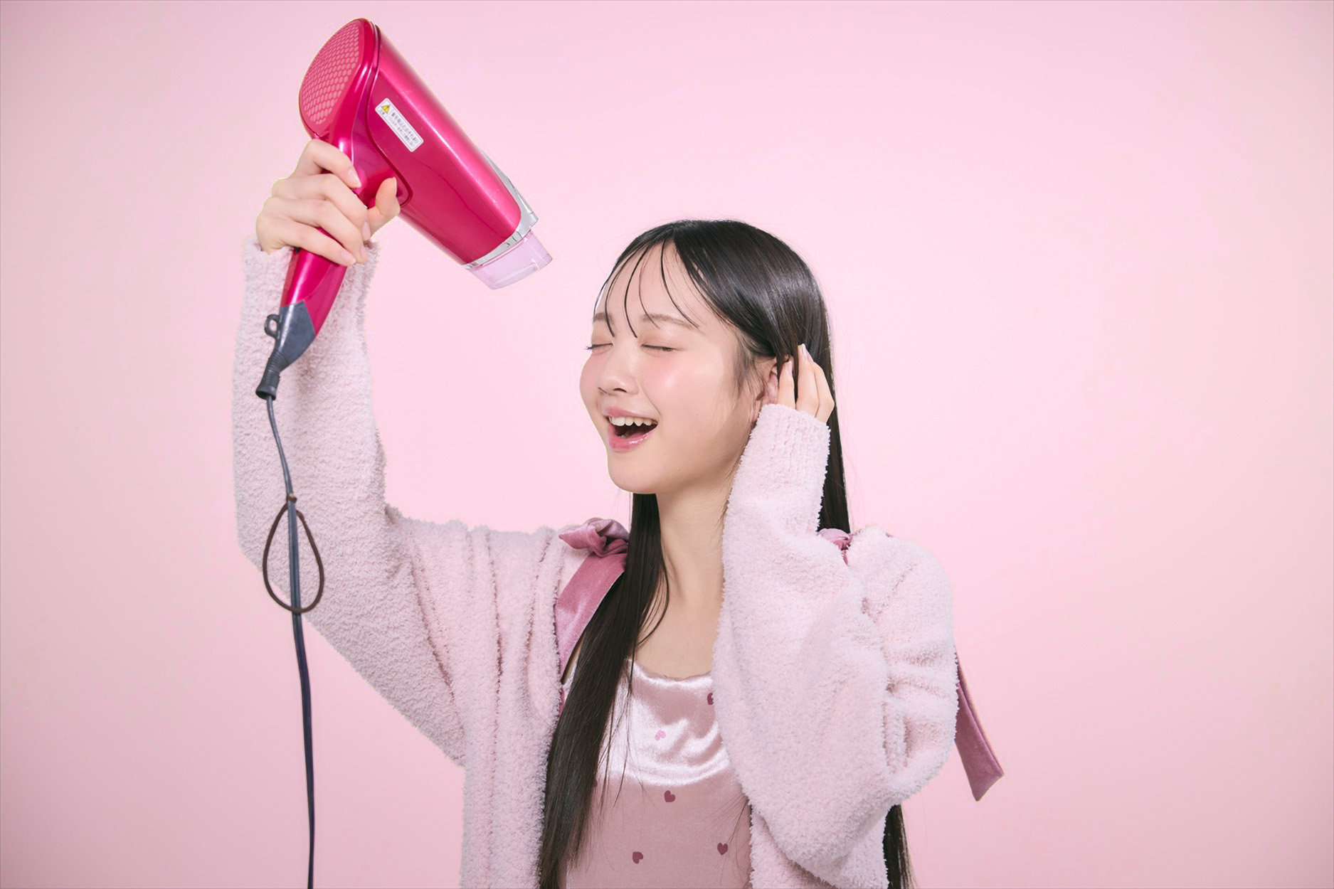 温風をあてて髪を乾かした後に冷風をあてることで髪の毛のキューティクルが閉じ、指やわらかくふんわりとしたツヤ髪に!全体的にあたたかい部分がなくなるまでするのがポイント。