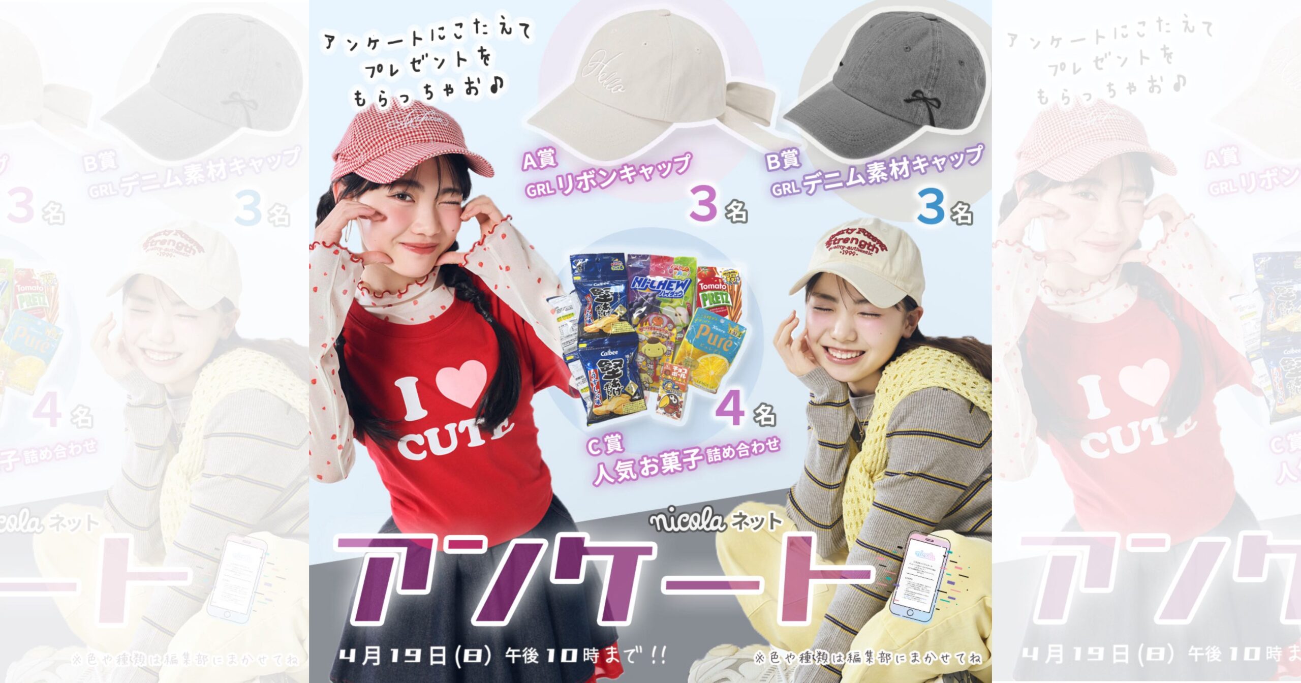 今週のネットアンケートはGRLのキャップや人気お菓子詰め合わせがもらえちゃう!