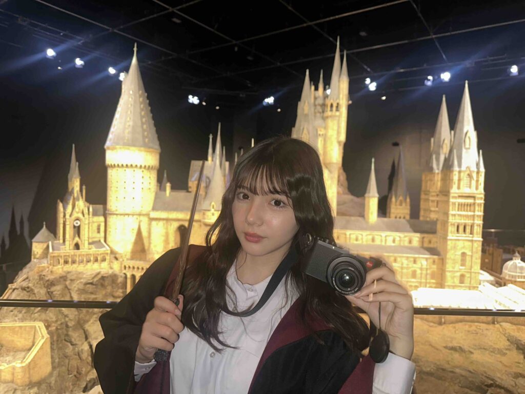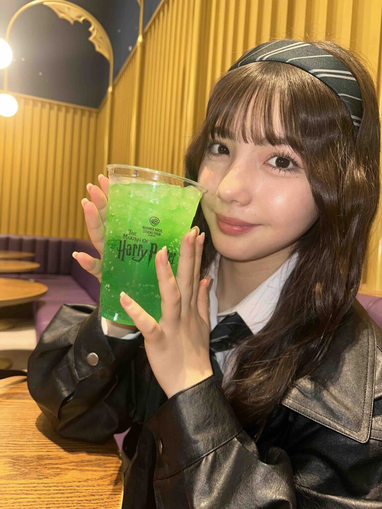 撮影後、お土産ショップでスリザリン寮のカチューシャとネクタイをゲットしておしゃれ度もワンランクアップ!シャツにプリーツスカートをあわせたプレッピーなスタイルでみんなもハリー・ポッターの世界に溶け込んでみよう!
