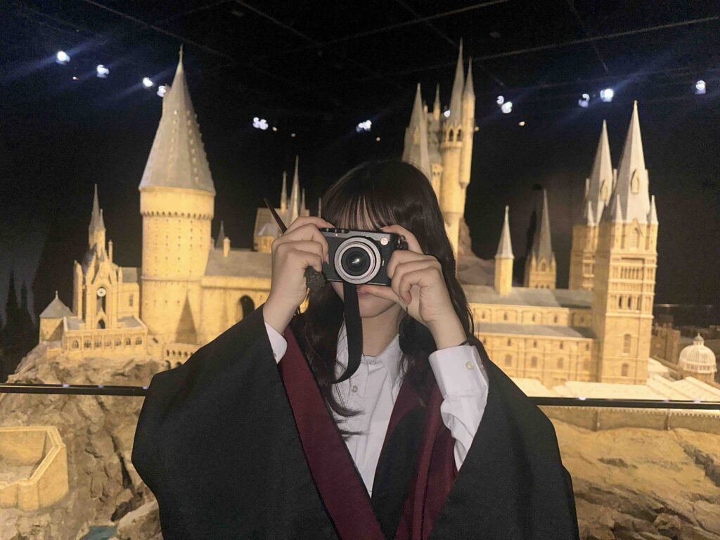 映画『ハリー・ポッターと賢者の石』の美術チームによって制作&再現された「ホグワーツ城」の模型をパシャリ!暗い中に光るお城は撮影が難しくて苦労しがち。