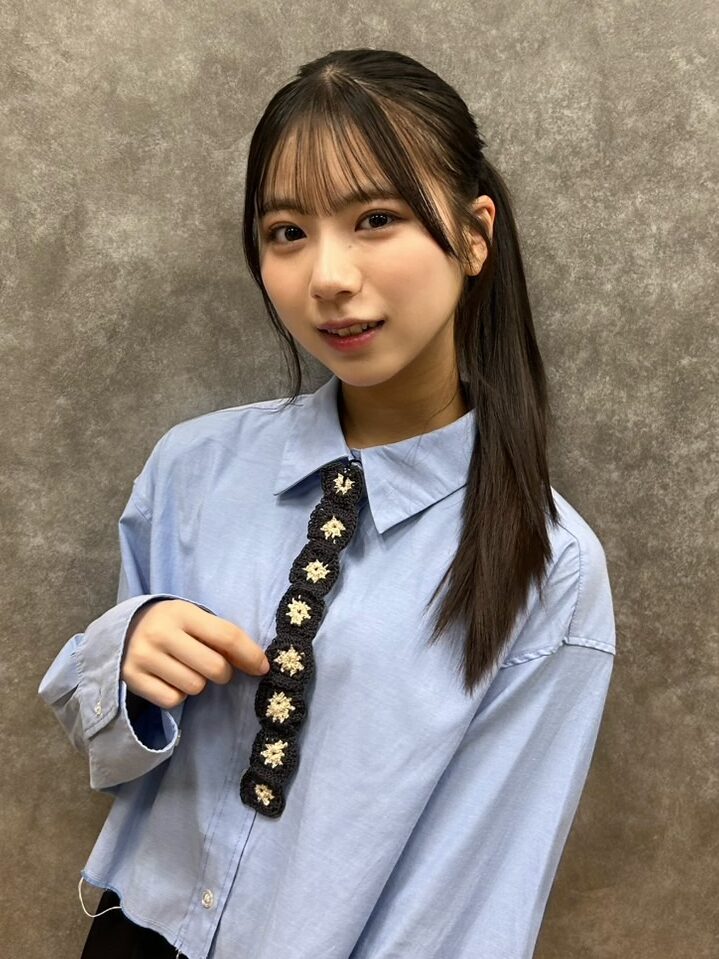 ハナ「分かる! 私も編み始めるとつい熱中しちゃうんだよね。電車での移動時間が長いからそのタイミング編んだり、雨で一日中家で過ごすときに作ってるよ! ネクタイは同じ物を何個か編んで、最後に繋ぎ合わせてるんだ♪ ユアちゃんと色違いのおそろいができて嬉しい♡」