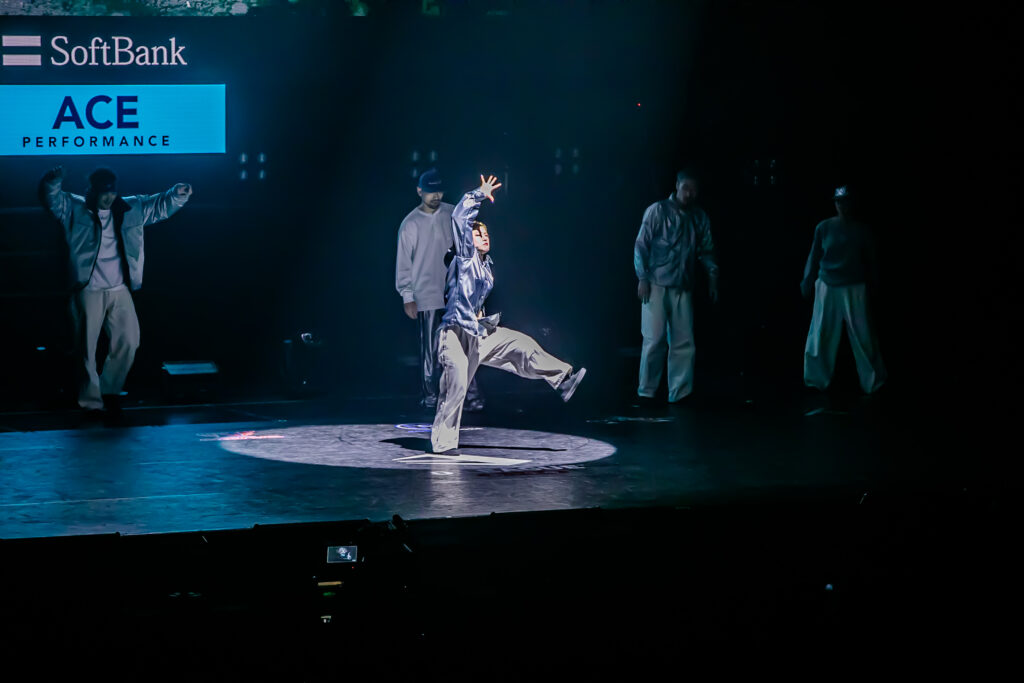 不思議な衣装で登場したdip BATTLES。得意のPOP(=ダンスのジャンル)を全面に押し出し、アニメーションとヒットでメリハリのあるショーケースを披露! なんとエースパフォーマンスでは、被り物を取るとKENSEIさんがスキンヘッドになっているというインパクト大なサプライズつき!