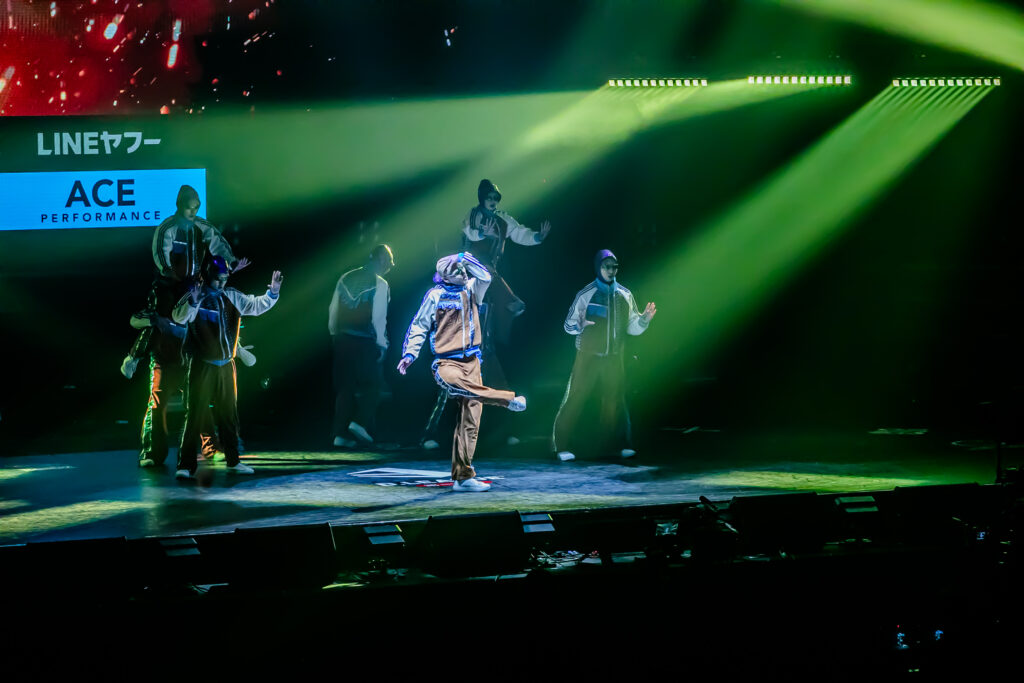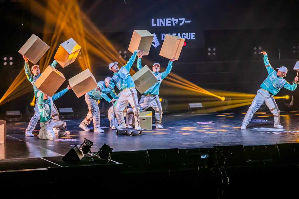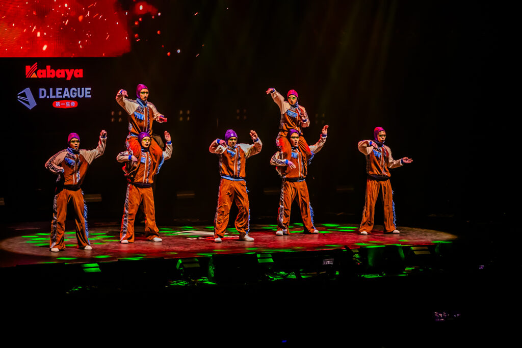 ラフを追求した衣装で登場したDYM MESSENGERS。簡単そうで難しいシンプルな音をシンクロパフォーマンスに選び序盤に披露したかと思えば、徐々に音を増やしストリートダンス愛、そして個性を爆発させる! 暗闇からダンサーが一人ずつ浮かび上がるような横一列のパフォーマンスで会場を魅了♪