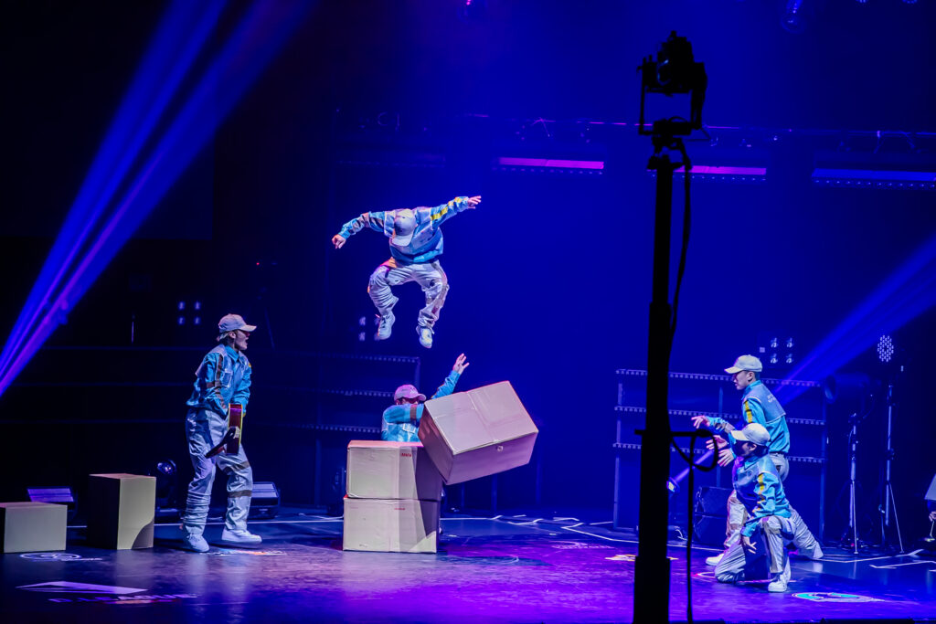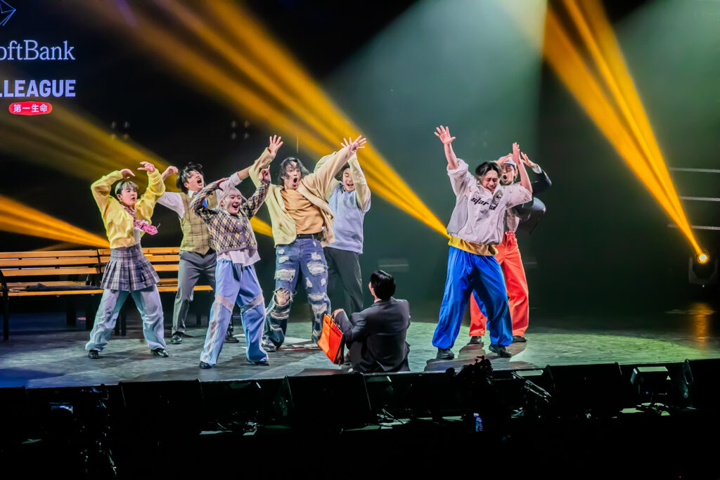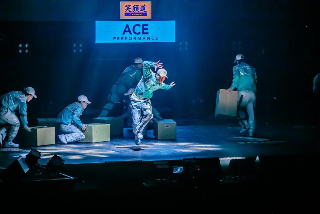 ギターのサウンド、そしてギター自体を小道具として振り付けにも生かして見せ場を作ったり、小道具の段ボールをステージとして使ったり、エースパフォーマンスを担ったShigetoraさんが台車に乗って登場したり。随所に遊び心を織り交ぜたステージで、あっという間の2分15秒を展開!