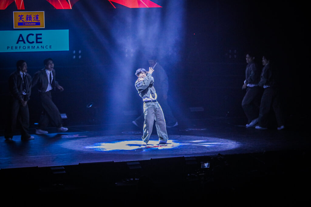 日本語リリックのメッセージを全面に打ち出す曲をチョイスしたKD。袖と背中にフリンジがついた衣装は、細部まで神経が行き渡ったようなシンクロ感! アクロバットはもちろん、同じ振り付けを2分15秒の中に織り交ぜるなど随所に湧きどころを作る構成は、さすがの王者の貫禄!