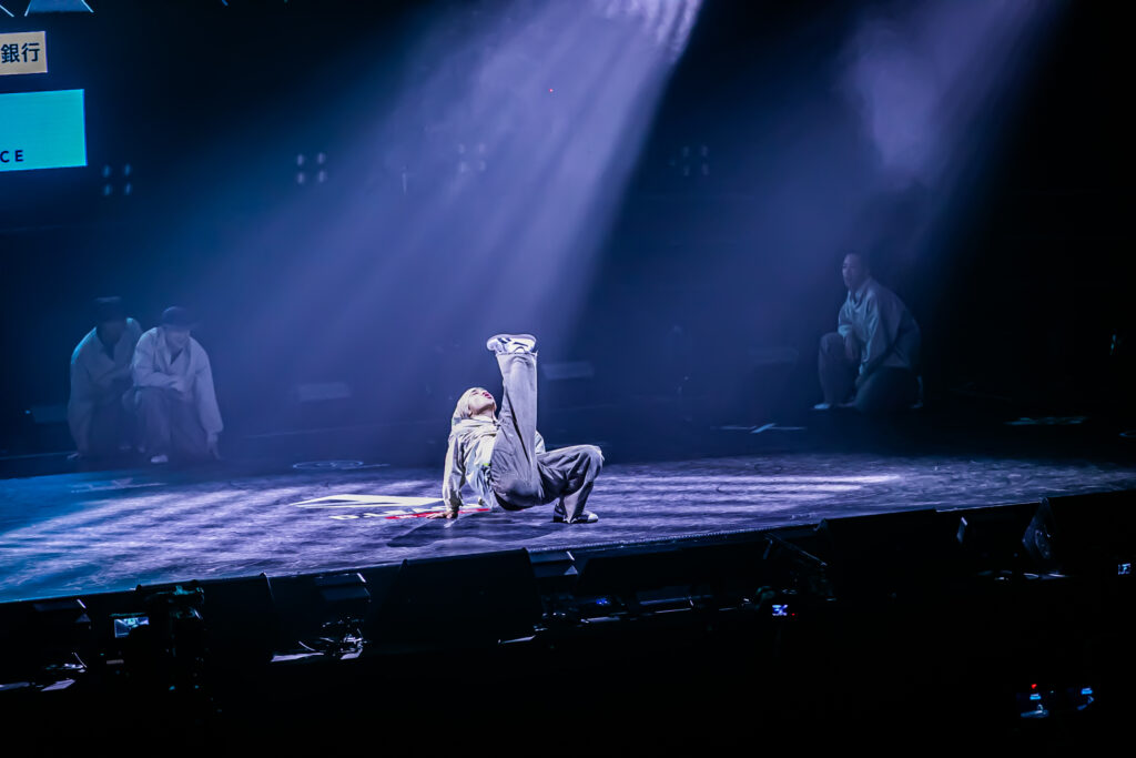 シンクロパフォーマンス×後ろ姿からショーを始めて観客を惹き込んだヴァリュエンス。効果的にシンバルの音をはさみつつ、ビートが変わるサウンドは突然異世界へ来たかのような楽しさ♪ 終始安定したブレイキンで、実力の高さを見せつけたよ。