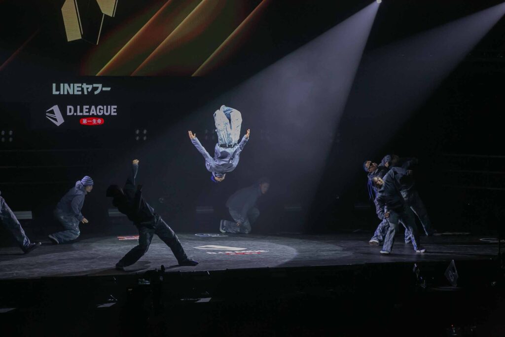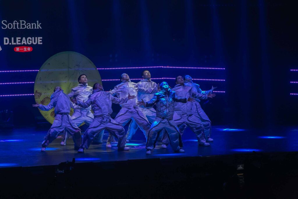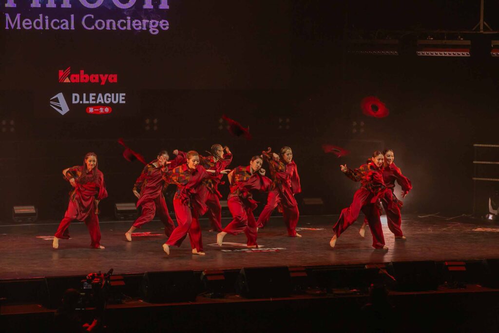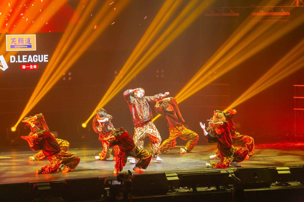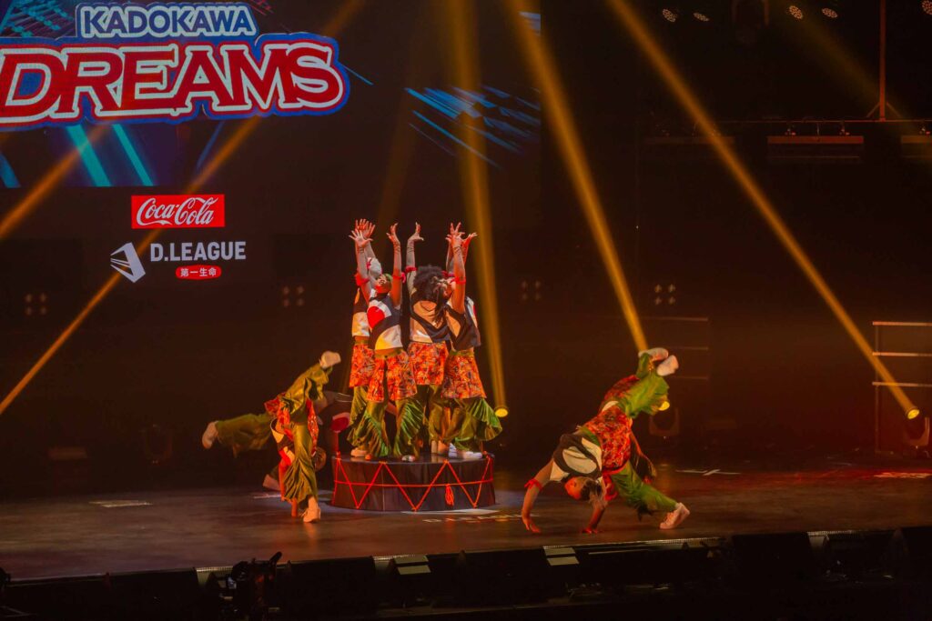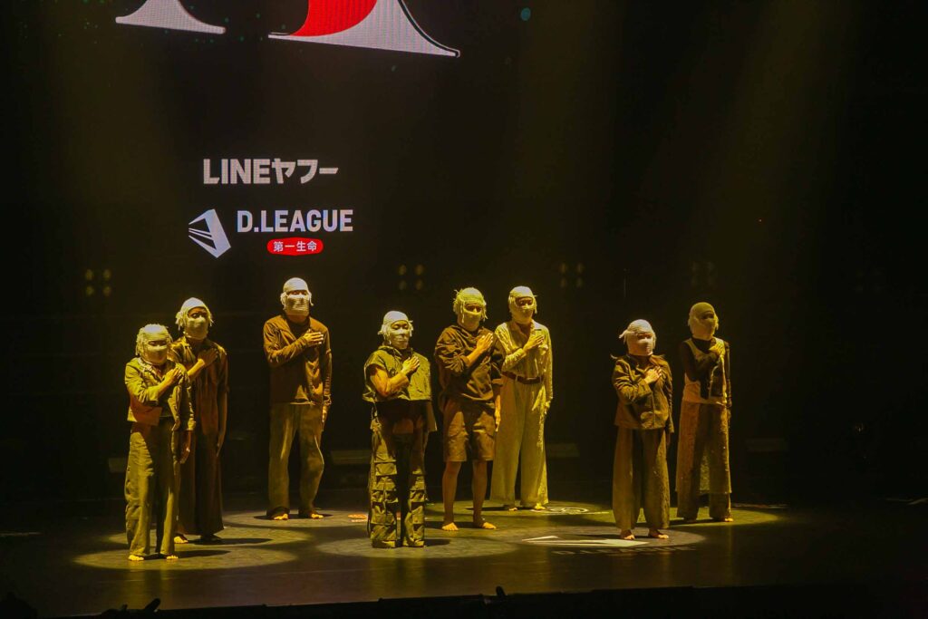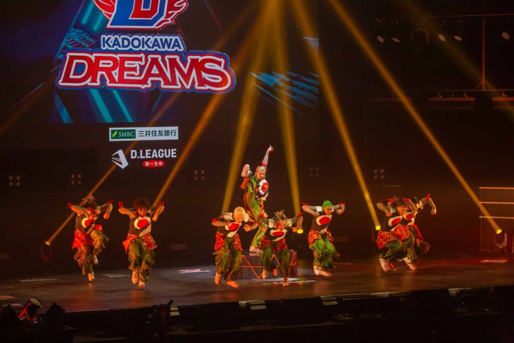 対Legit戦に挑むスターティングメンバーは、KADOKAWAの未来を感じるようなダンサーたちの選出だったように感じます! 毎回新しい挑戦を仕込んでくるこのチーム、今回は民族のような音と動きで会場を巻き込む! 小道具の太鼓を用いることで、緩急のあるコレオが印象的でした。