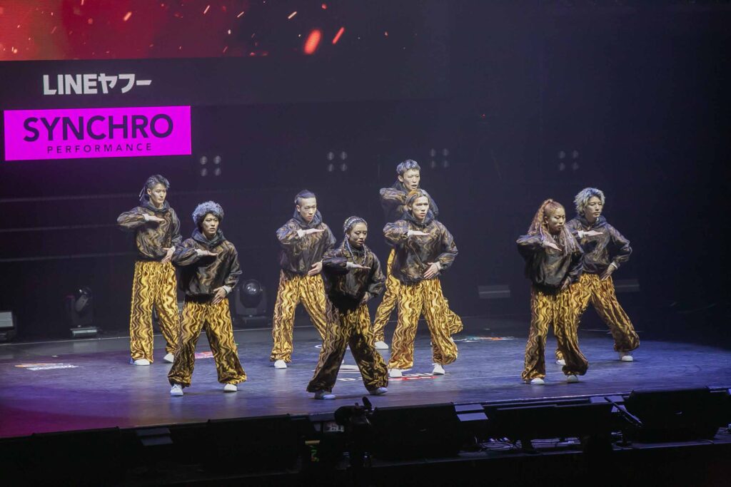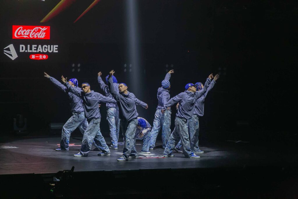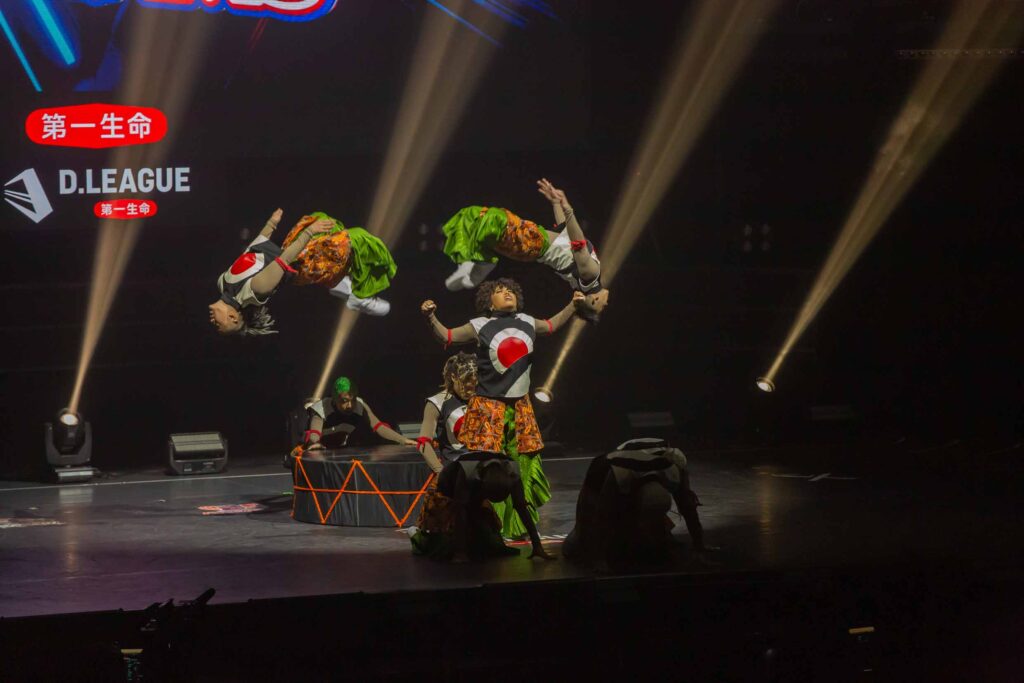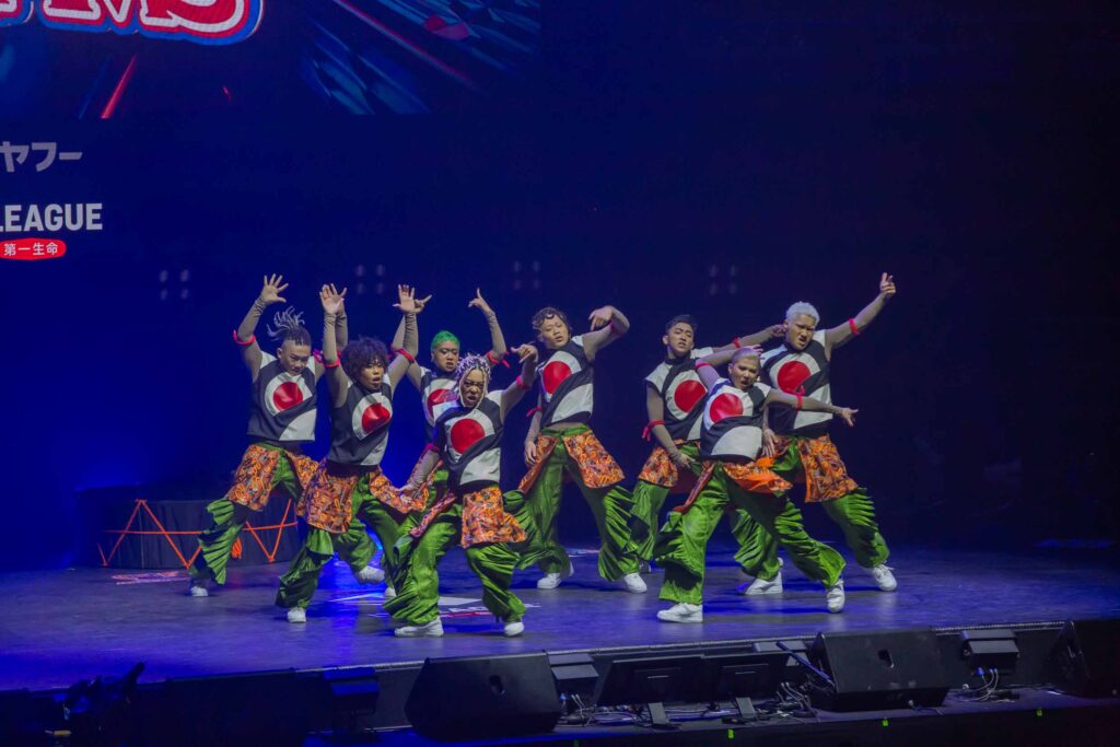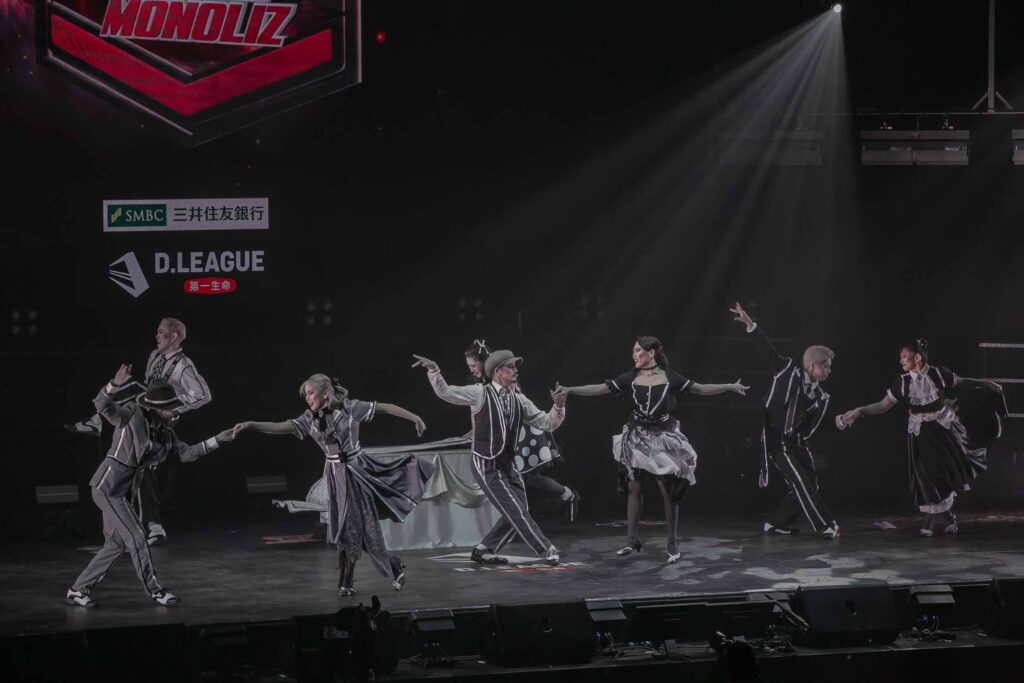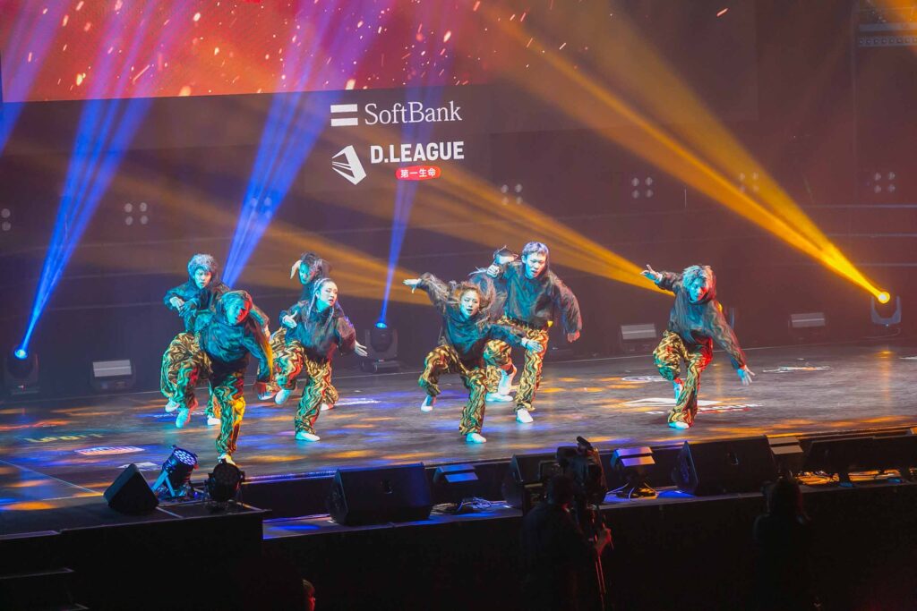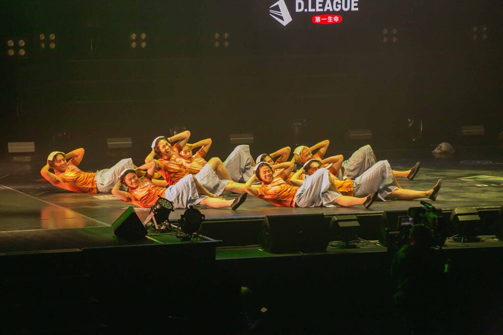 対Legit戦に挑むスターティングメンバーは、KADOKAWAの未来を感じるようなダンサーたちの選出だったように感じます! 毎回新しい挑戦を仕込んでくるこのチーム、今回は民族のような音と動きで会場を巻き込む! 小道具の太鼓を用いることで、緩急のあるコレオが印象的でした。