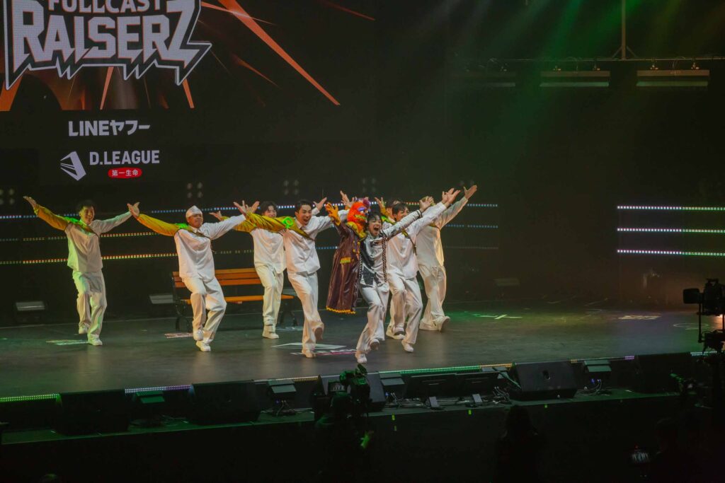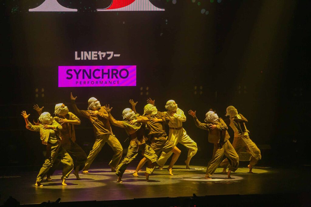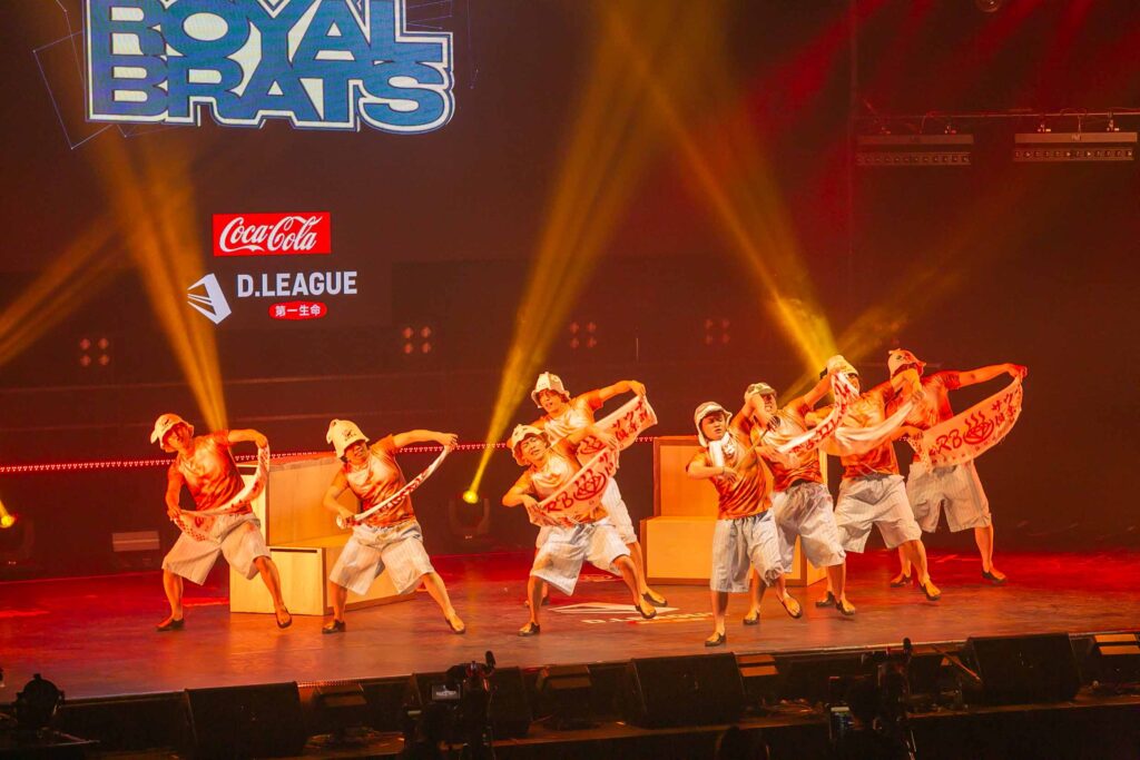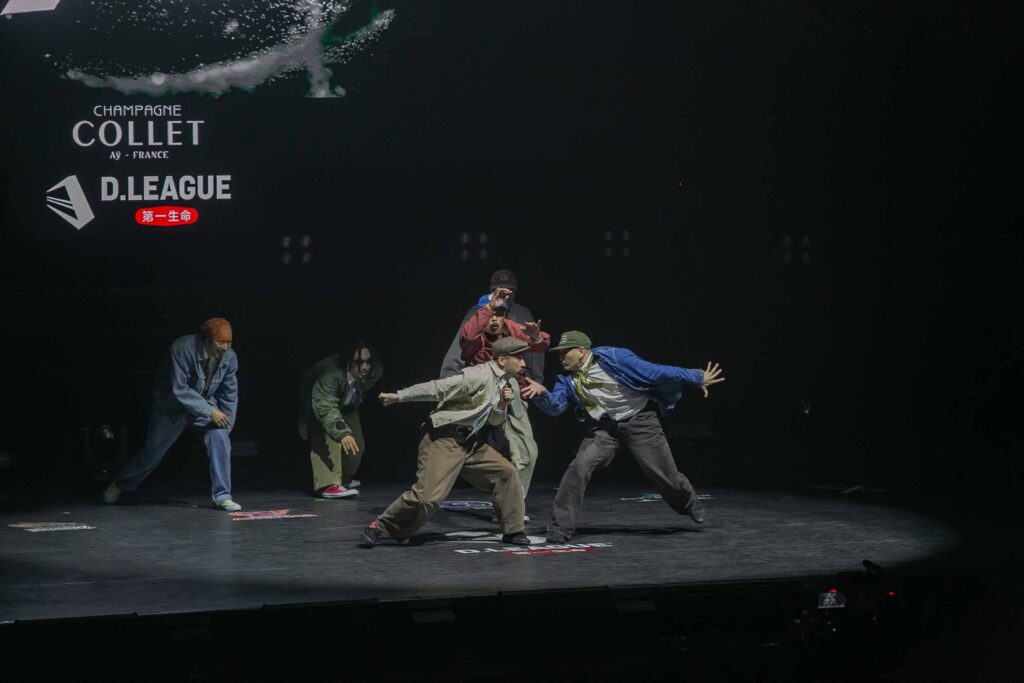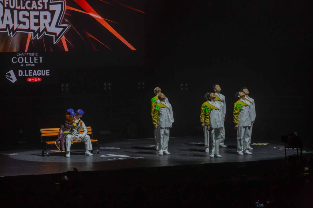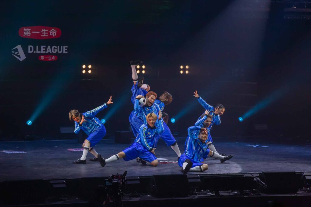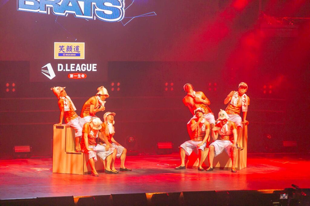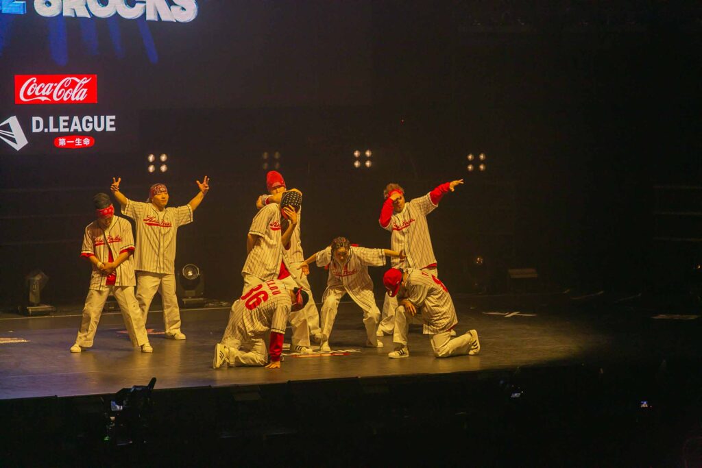 対Legit戦に挑むスターティングメンバーは、KADOKAWAの未来を感じるようなダンサーたちの選出だったように感じます! 毎回新しい挑戦を仕込んでくるこのチーム、今回は民族のような音と動きで会場を巻き込む! 小道具の太鼓を用いることで、緩急のあるコレオが印象的でした。