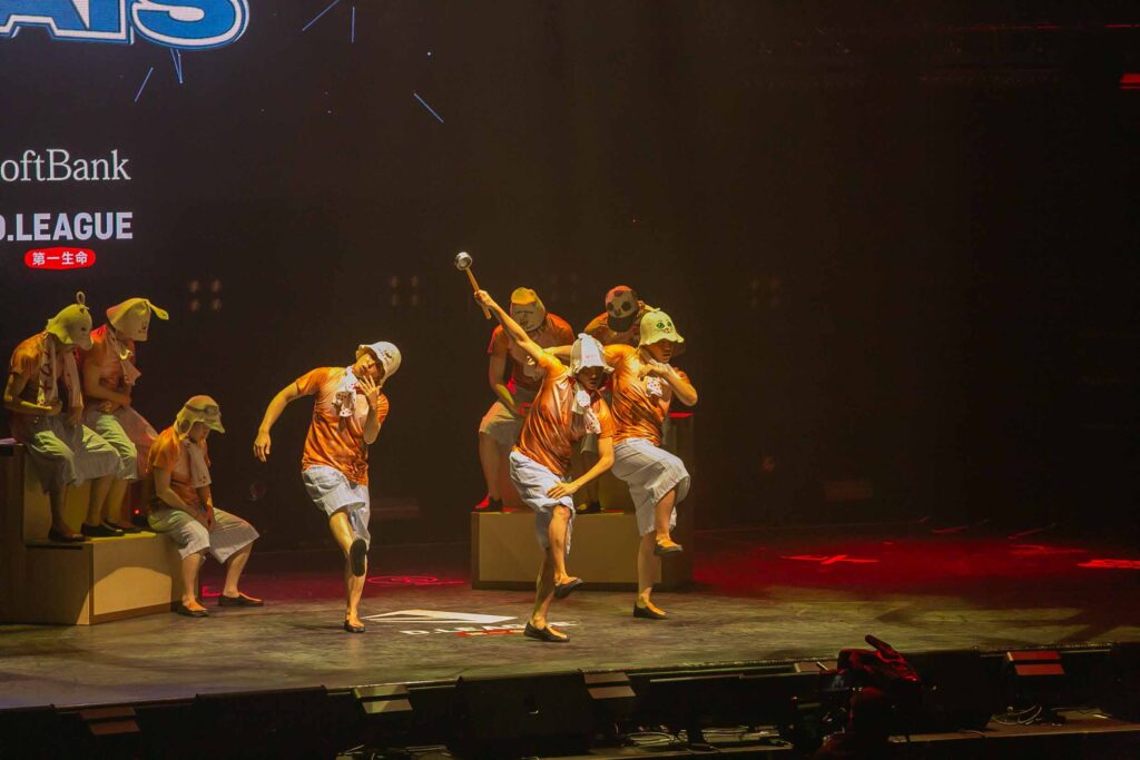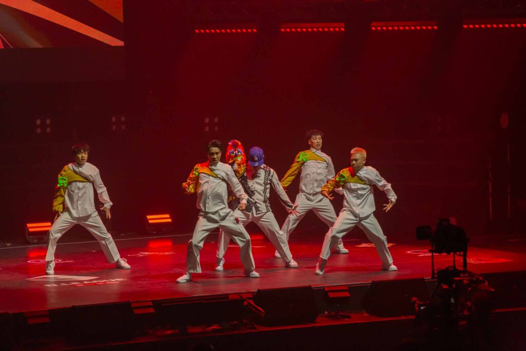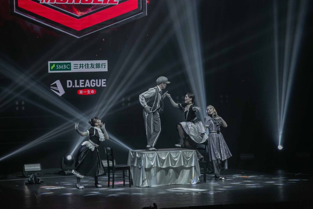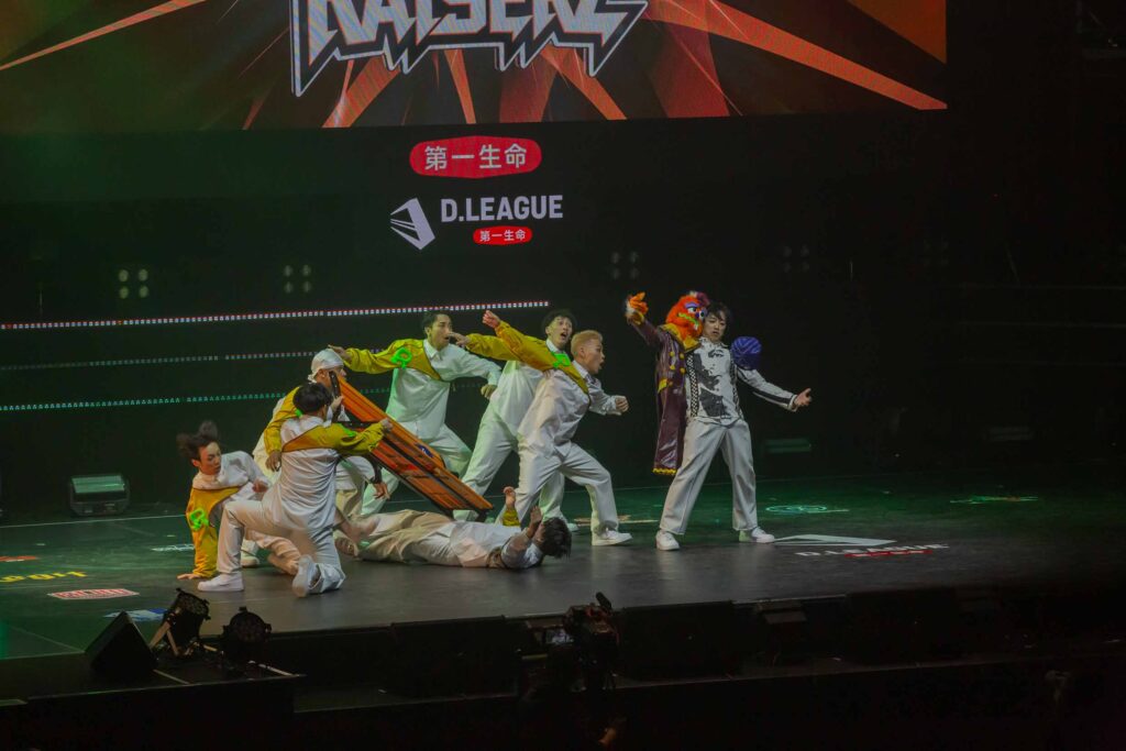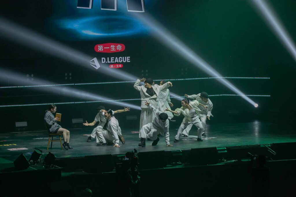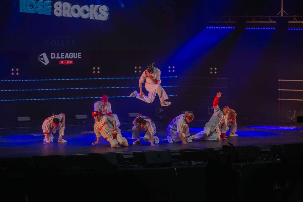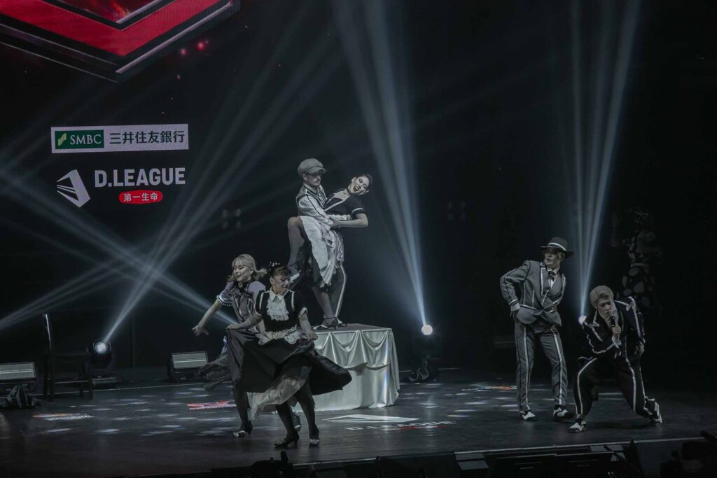 対Legit戦に挑むスターティングメンバーは、KADOKAWAの未来を感じるようなダンサーたちの選出だったように感じます! 毎回新しい挑戦を仕込んでくるこのチーム、今回は民族のような音と動きで会場を巻き込む! 小道具の太鼓を用いることで、緩急のあるコレオが印象的でした。