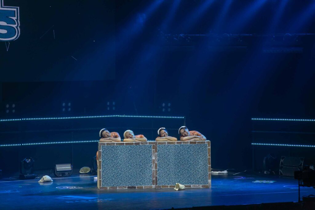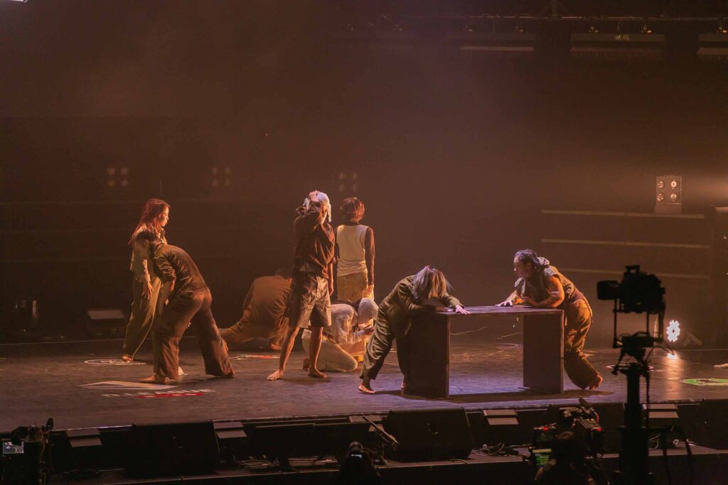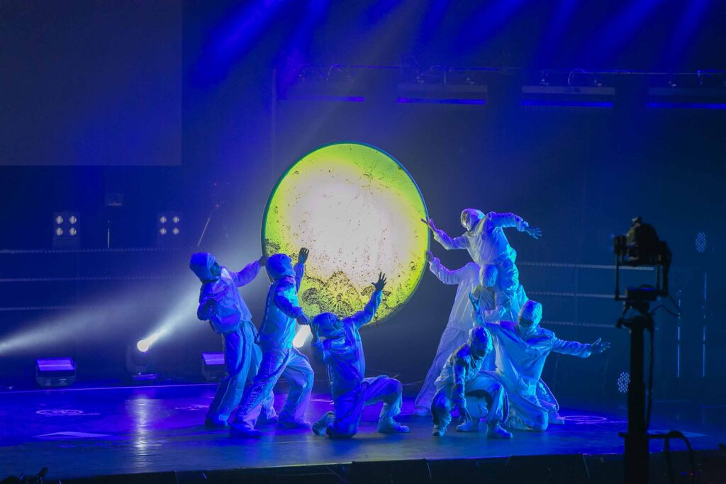小物使いが上手なラプチャーズ、今回は月をモチーフにした円形のオブジェを用いてパフォーマンスを披露。蒼光の中で、予測不能な動きが次々と飛び交っていました! 月面にいるような、重力を感じさせない小道具の使い方がおもしろい…!