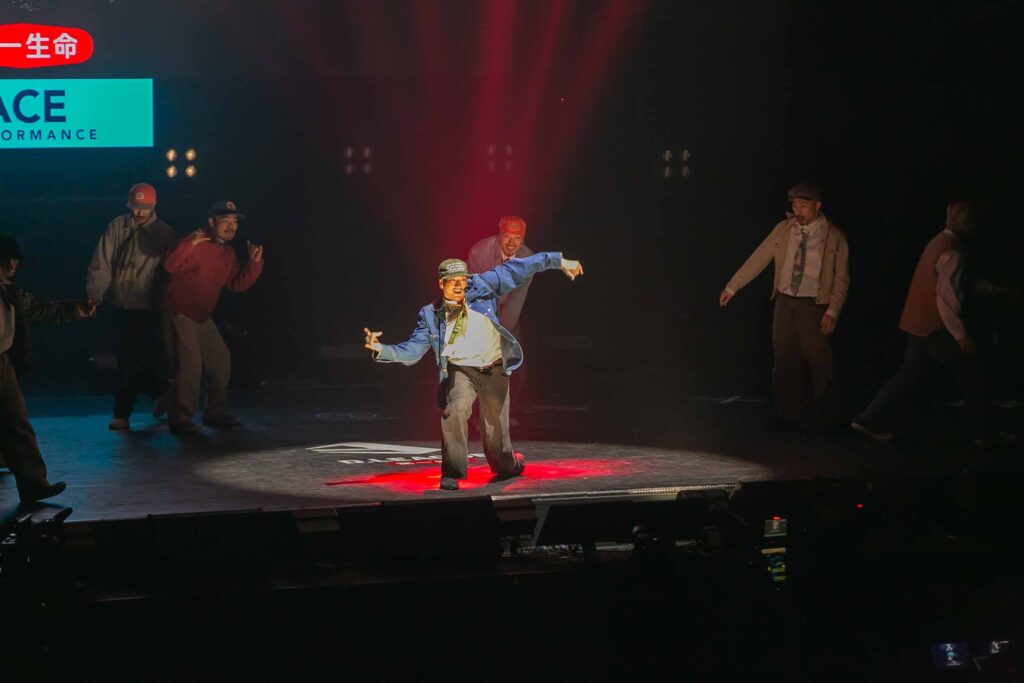 いつもは力強い表情が印象的なRAISERZですが、今回はテーマに合わせてメンバーひとりひとりの笑顔がステージ上で光ります!! スネアの音に合わせた硬い動きと、大ぶりのクランプ、そしてマペットを融合させて新感覚で楽しめるクランプのパフォーマンス。観てるこちらもリズムに乗って顔がほころぶ、ピースフルな作品でした!