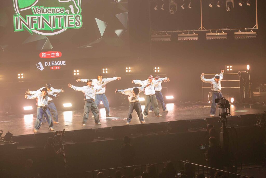 後攻のValuence INFINITIES(バリュエンス インフィニティーズ)のテーマは『Connection』。ブレイキンとヒップホップをなめらかにつなぎ合わせたコレオに注目‼︎