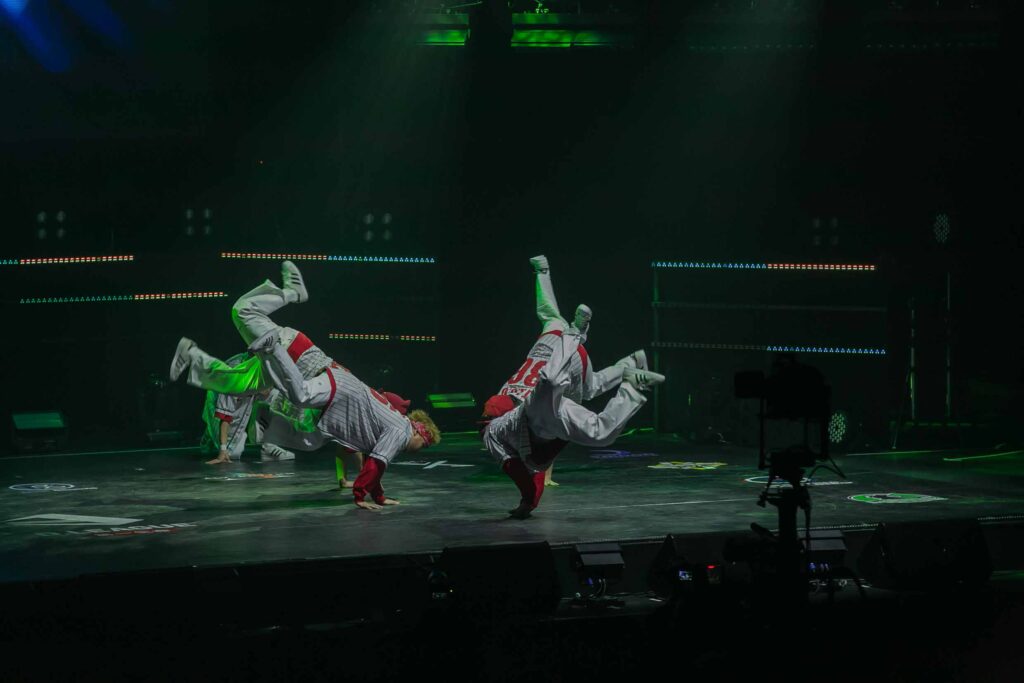 今夜も世界最高峰のブレイキン集団が大暴れ! アップテンポな音楽に合わせて、王道のブレイキンの動きで会場から手拍子を誘う♪ 照明やステージを上手に使い、”観客に向けて”の意識を感じさせるパフォーマンスが好印象でした!