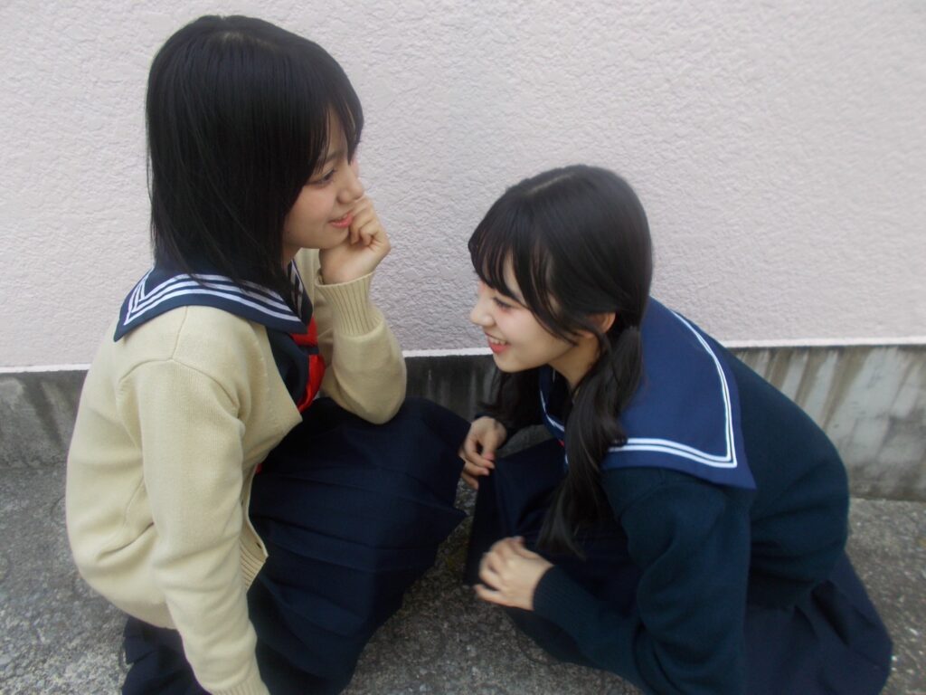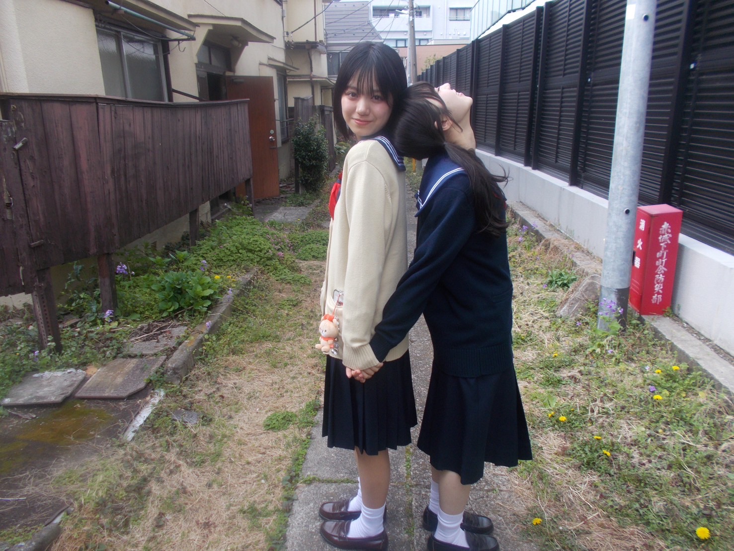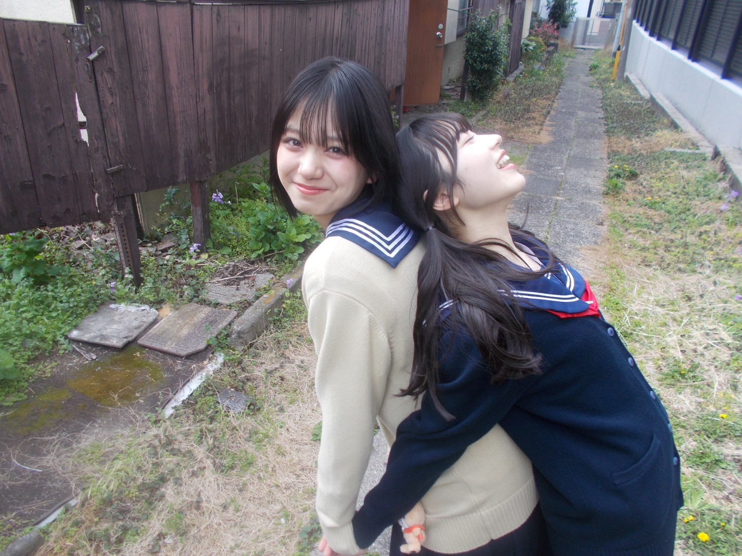 ワカナ「しゃがんだときのこじんまり感がカワイくなる♡ 撮る場所はあえて普通のコンクリとかか日常っぽくてイイ!」 ヒヨリ「あとカメラ目線をしないのもいーよね♡ 向かい合ってるところを撮るの、仲良しな感じが出て好き!」