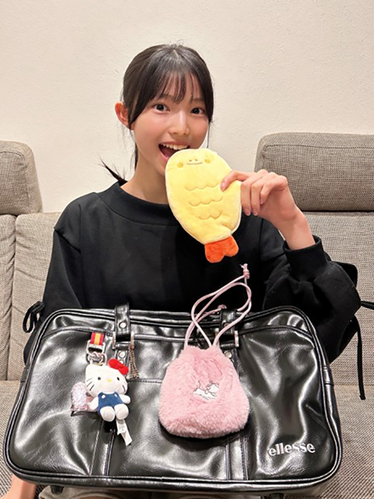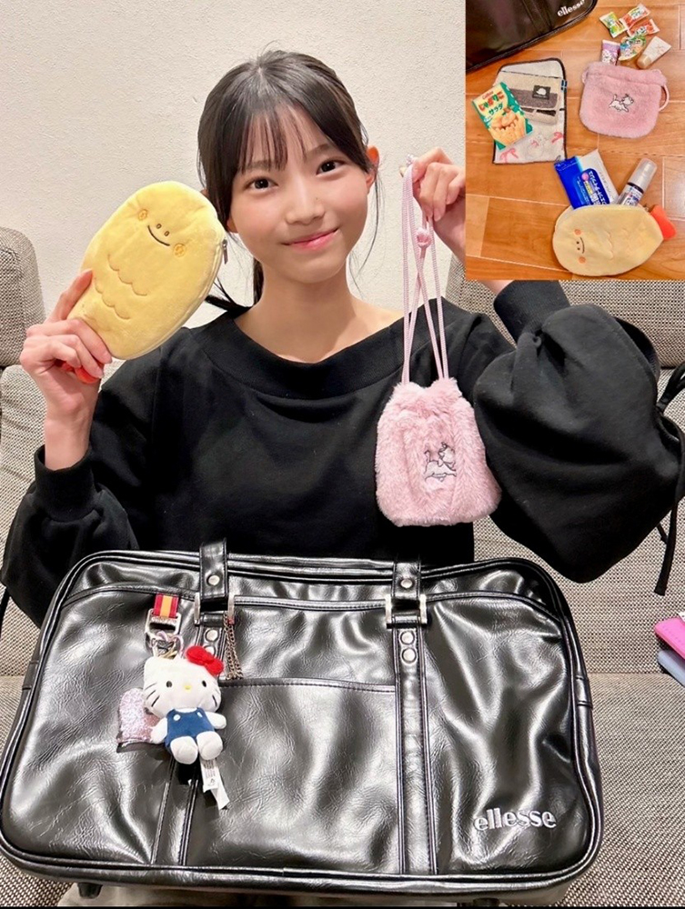 こちらのスクバにつけているお守り、京都の車折神社・芸能神社のお守りなんだけど、ニコラの最終オーディションの時に、私が全力を出して頑張れるように♡ って、事務所のマネージャーさんから頂いたお守りなの🥹✨