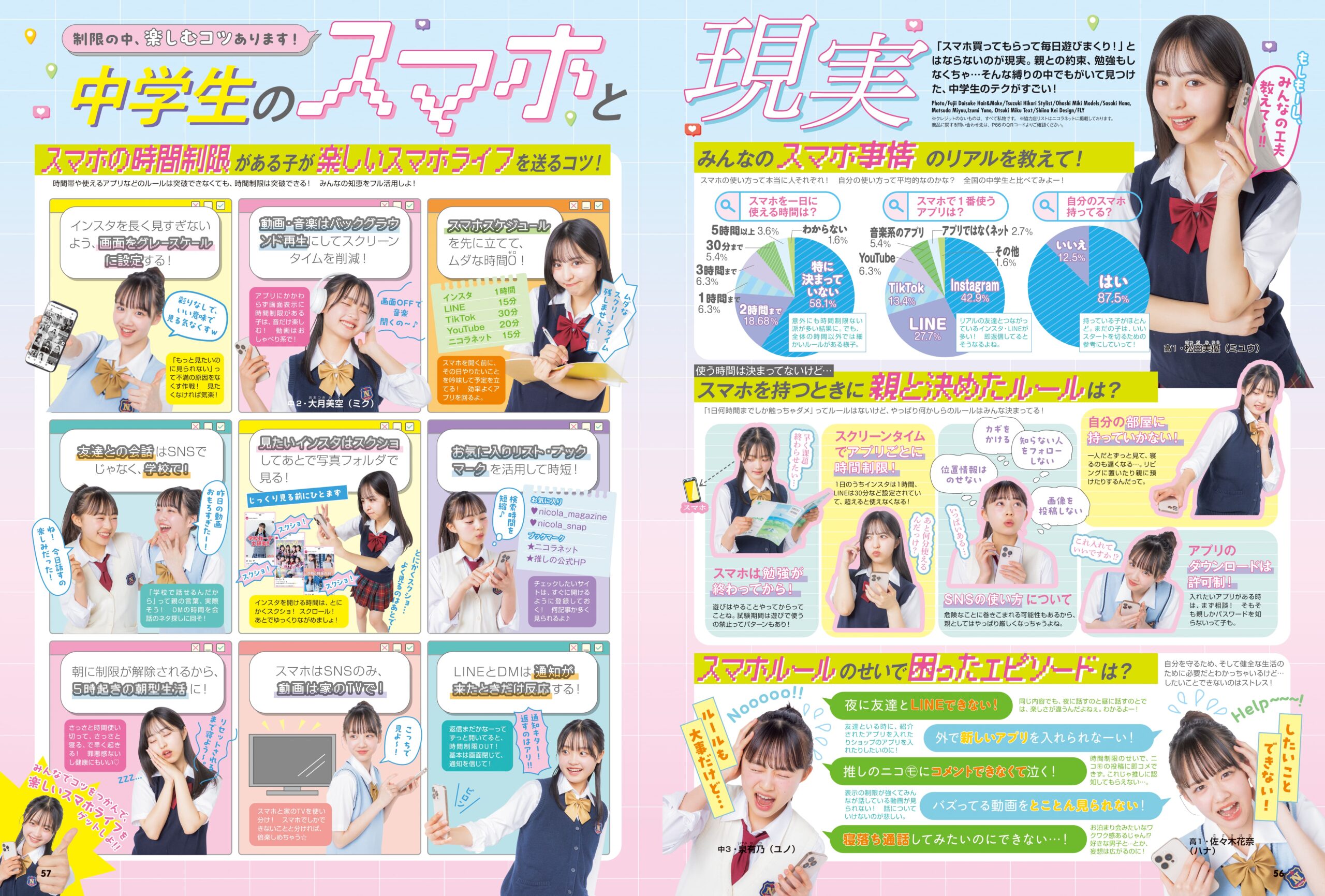 巻頭特集は「ニコ㋲のキラキラお仕事毎日おしゃれストーリー!」オーデに合格してニコ㋲になったらこんな楽しい未来が…!ニコ㋲たちにお仕事の魅力をたくさん聞いたよ。
