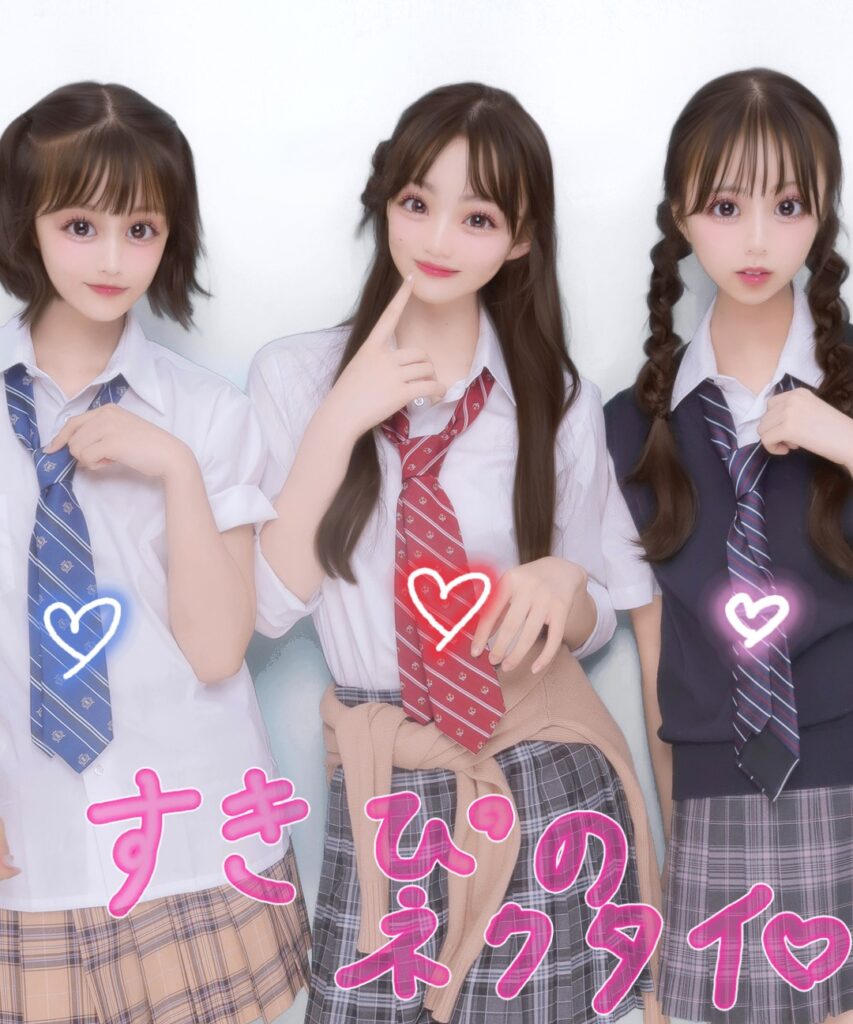 すきぴのネクタイを借りて撮るきゅんきゅんプリ♡青春すぎて眩しい……!もちろんイマジナリーすきぴのネクタイでも良いし、推しがいる子はメンバーカラーのネクタイをつけるのもアリ◎