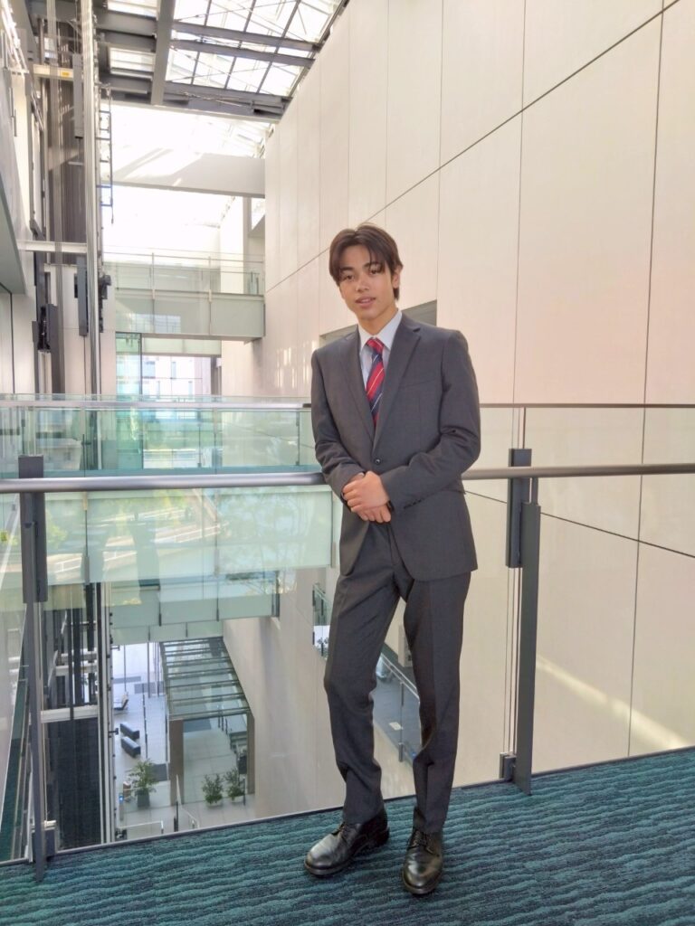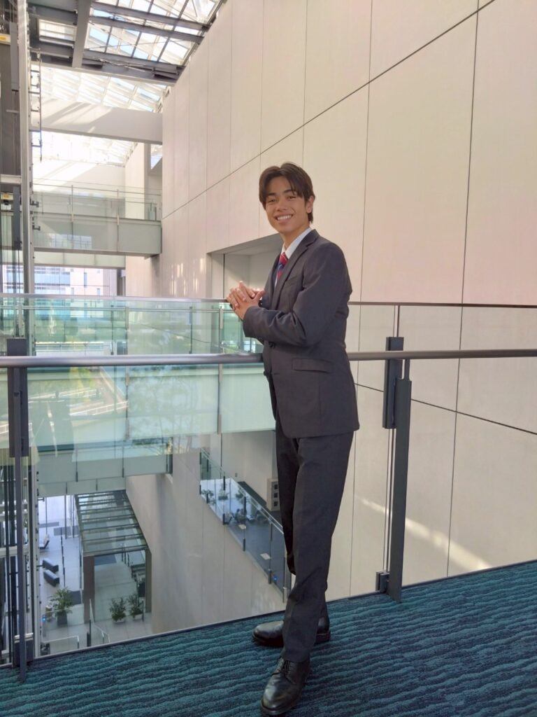 「僕が演じた新山健太郎はものすごく『日の出鉛筆』への愛が大きくて、目指したことにしっかり向かって頑張る一途な人です。僕はまだ就職活動の経験はないけど……興味がある事に対して一途に向かうところや、目標に向かってまっすぐに進もうとする部分は少し自分と近いところもあるのかなと思いました。あとは、真面目なとこもあるけど、おちゃめでかわいい部分も持っていると思います」