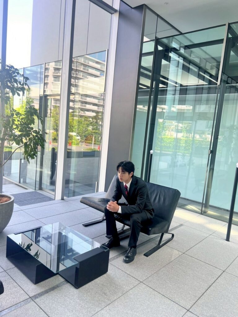 「撮影現場はすごく明るくてずっと笑い声や笑顔が絶えない雰囲気でした。そして共演させてもらった皆さんやスタッフさんがすごく優しかったです。緊張しすぎて何も分からない自分に、人見役の松田元太さん(Travis Japan)がたくさん話しかけてくれたり、セリフの言い方なども色々教えてもらえました。皆さんのおかげで安心して撮影に挑めたと思います。同じ事務所の先輩の桜井日奈子さんも撮影前にリラックスできるようにと飲み物を持ってきて声を掛けてくれたり、すごく心強かったです! 休憩中には人事部の皆さんから就活生役のみんなに差し入れをいただいたり、本当に楽しかったです。楽し過ぎて撮影時間があっという間に終わった感覚でした」