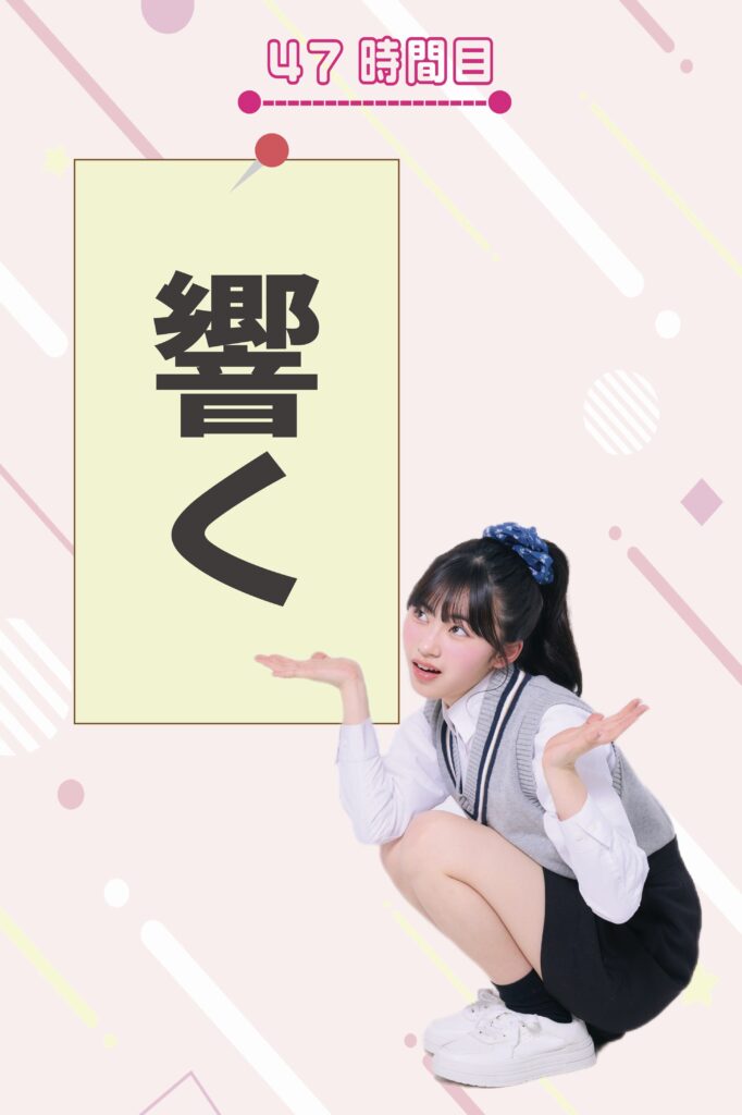 「響く(ひびく)じゃないの⁉︎ えー、難しい! “ひびく”って読んじゃうなー……。でも確かに、会場が“どよめく”って言うもんね。漢字が同じでも別の読み方があることを覚えておこう!」