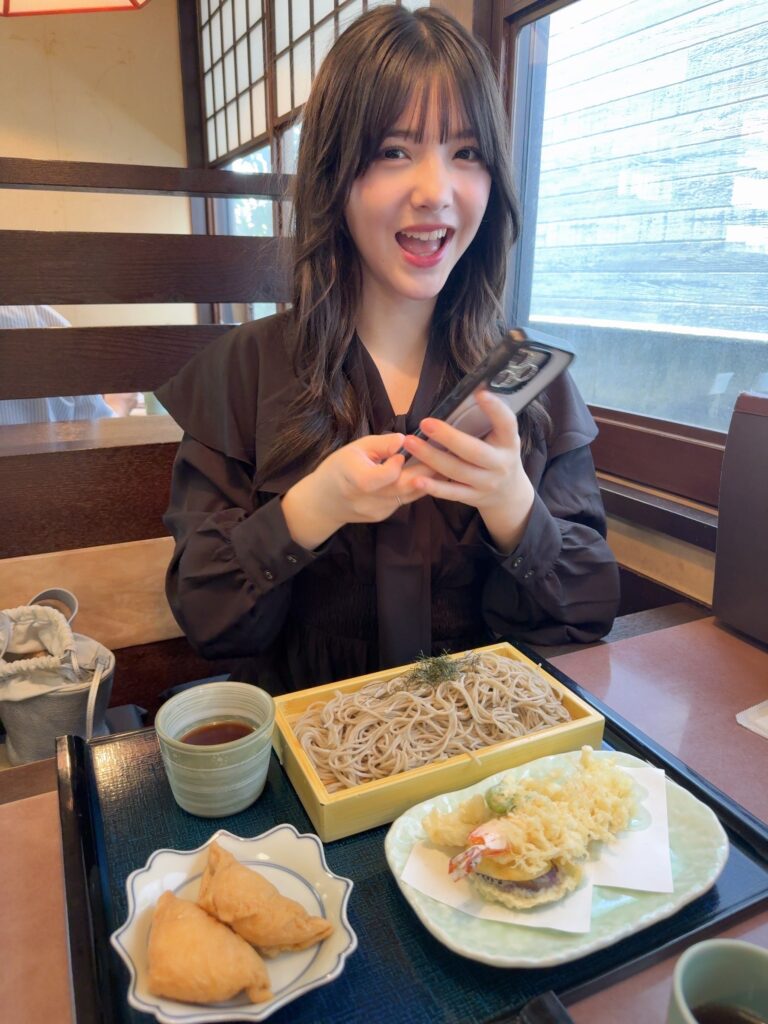 近くでおそば、あんみつも食べて