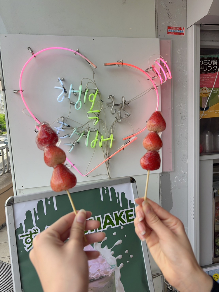 そしてお腹いっぱいのはずなのに・・・フルーツ飴のお店でいちご飴食べちゃいました🍓