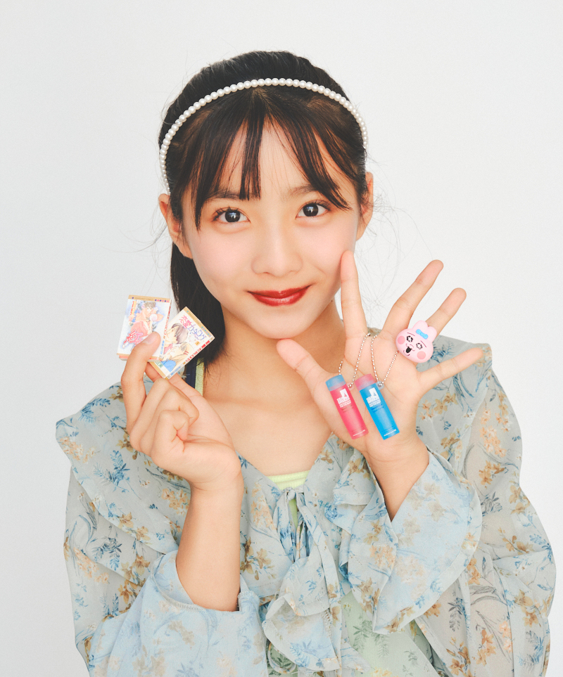 リファのコームはピンクをチョイス! 大人っぽくて高見えなのがお気に入り! ルーズソックス風ペットボトルカバーは、カプセルトイの商品とは思えないリアルさにびっくり!