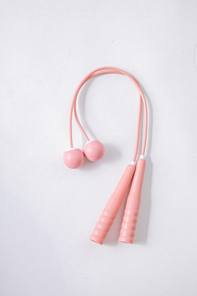 ピンクのウェアで気分を上げながらヨガやトレーニングをしてるよ! エアなわとびは天気が悪くても室内で飛べる優れものでおすすめ! 筋膜ローラーでゴリゴリ気になるところを転がしたり……お家トレーニングにハマり中!