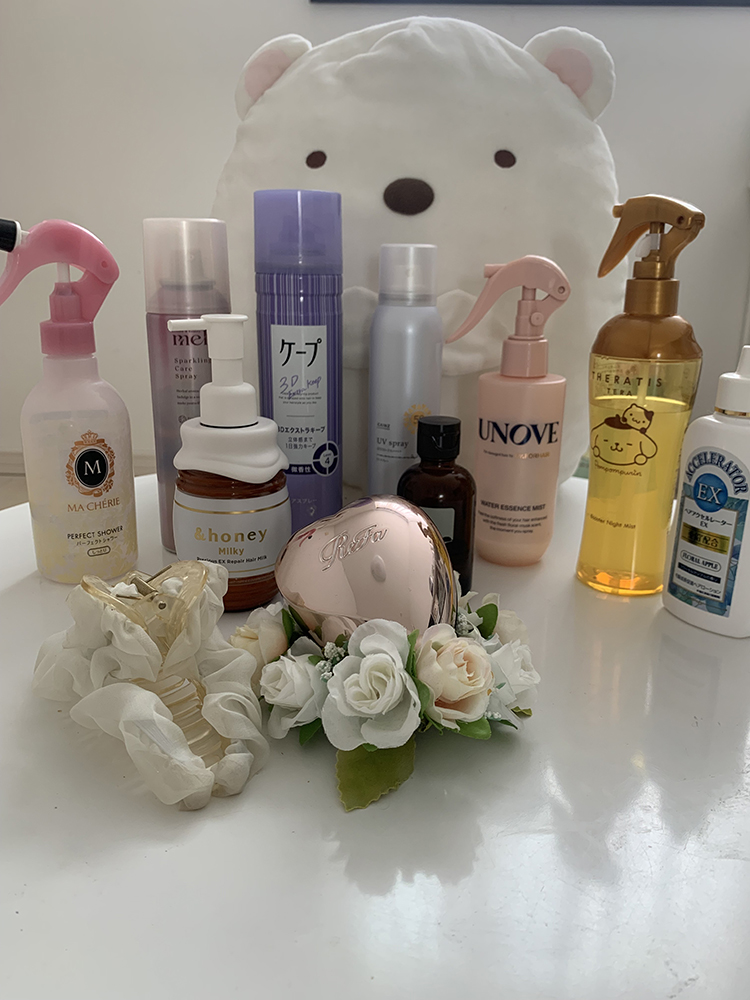 これから日差しが強くなる夏のアイテムとして、髪も日焼け止めが大切で、スプレータイプの日焼け止めを使っています⭐