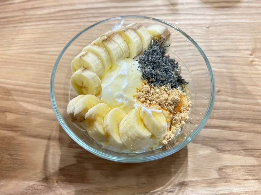 ヨーグルトにはきな粉と黒すり胡麻をかけます!
