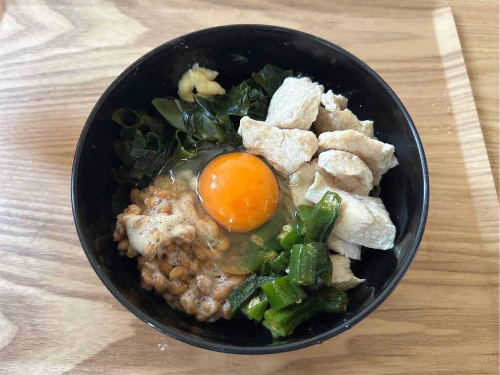 ②納豆や卵、オクラなどの腸活食材を乗せる!