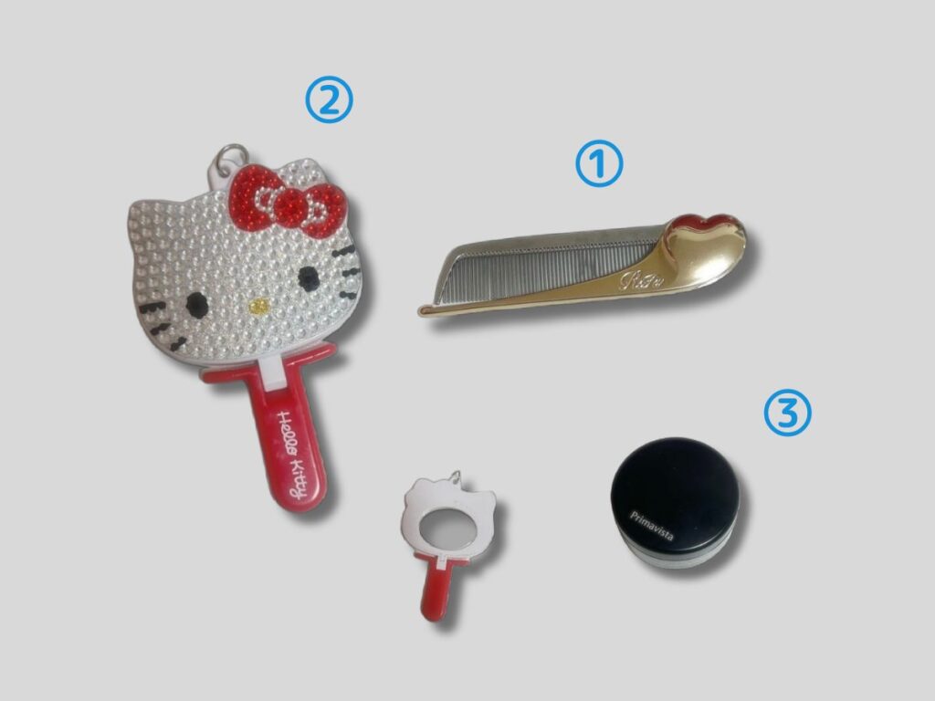 前髪確認に欠かせない!大好きなキティだし持ち手を立てることもできて、チャームにもなるので便利!ギャルっぽくて学校のみんなからも好評だよ♡