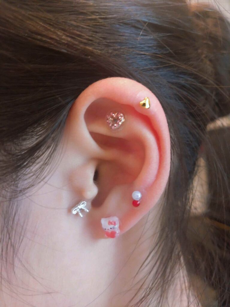いろちゃんはとくに、キティちゃんの耳つぼジュエリーがお気に入りミ・◦・ミ🎀