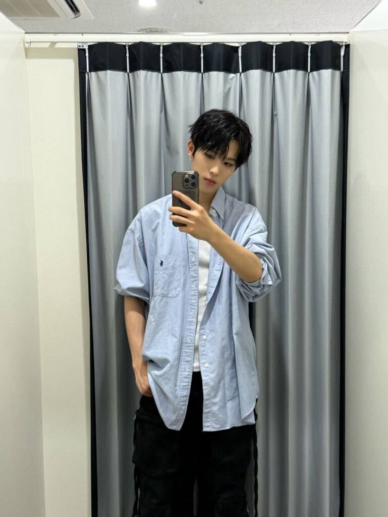 HYUI:僕はふだんシャツを着るのが好きなんですけど、冬の間は全然着られずにいたので春夏に向けて水色のシャツを買いました。お気に入りポイントはちょっとオーバーサイズなところで、ゆるっとおしゃれに着こなしたいです。