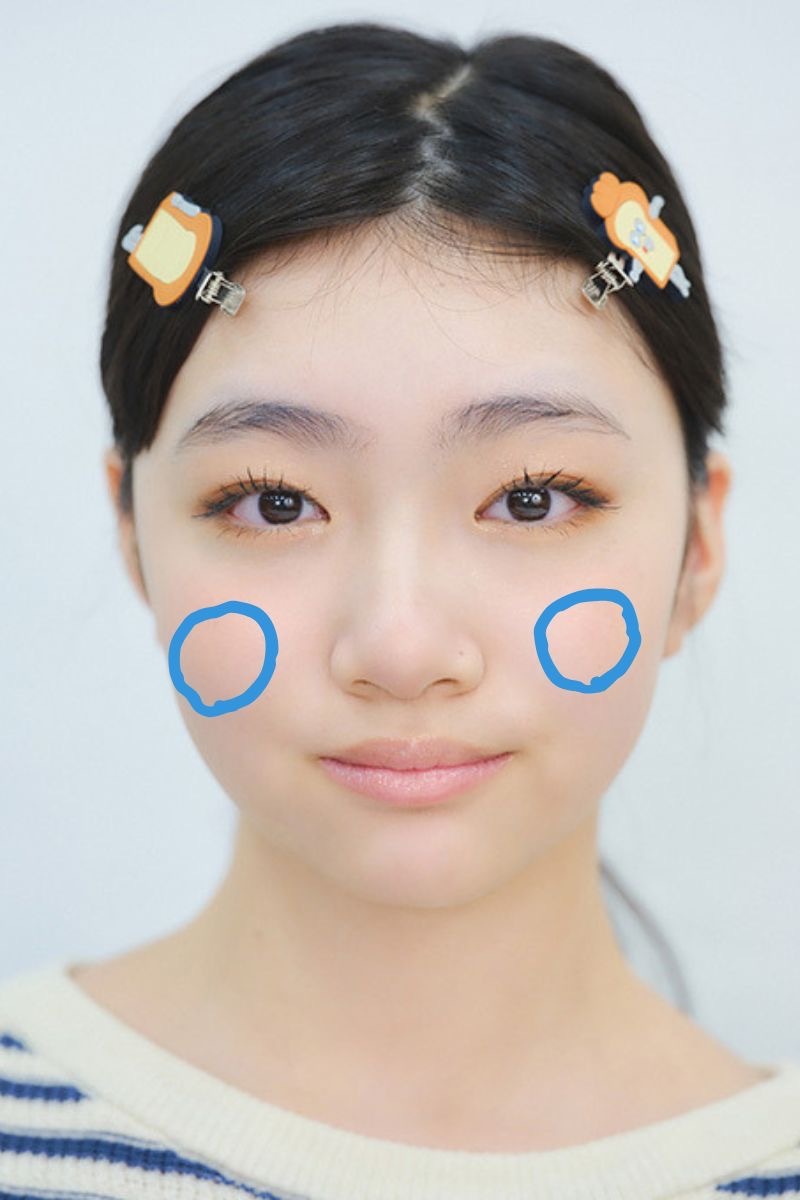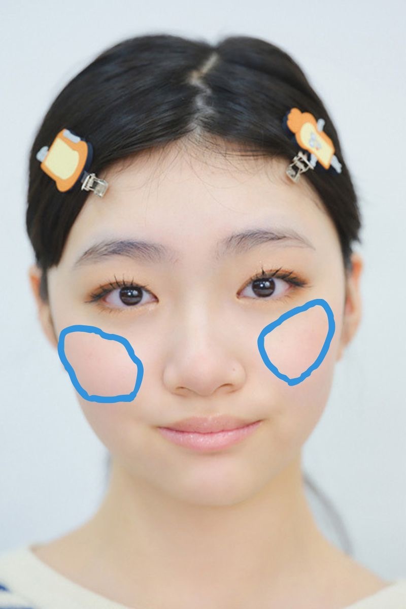 ほおの高いところを中心に、まん丸く入れるとキュートでかわいい印象に。