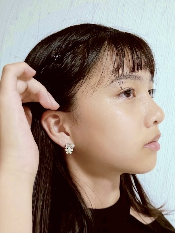 絆創膏のテープを耳に貼ってそこにさしてつけました🩹