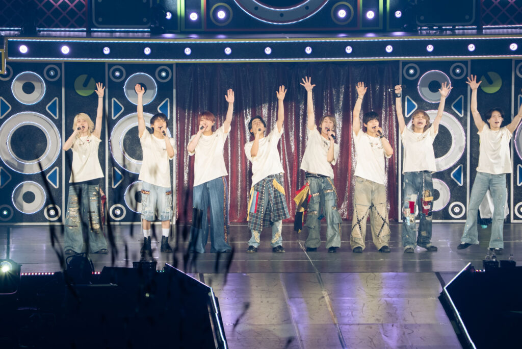 矢花黎くん 今日はありがとうございました。楽しかったですか。俺たちもバンドもやってたり、ダンスもやってたり、色々やるけど、音楽大好きなんですよ。一緒に楽しんでいきましょうよ、音楽。それだけでじゅうぶんだよな? ありがとうございました。今日からB&ZAIでした!!