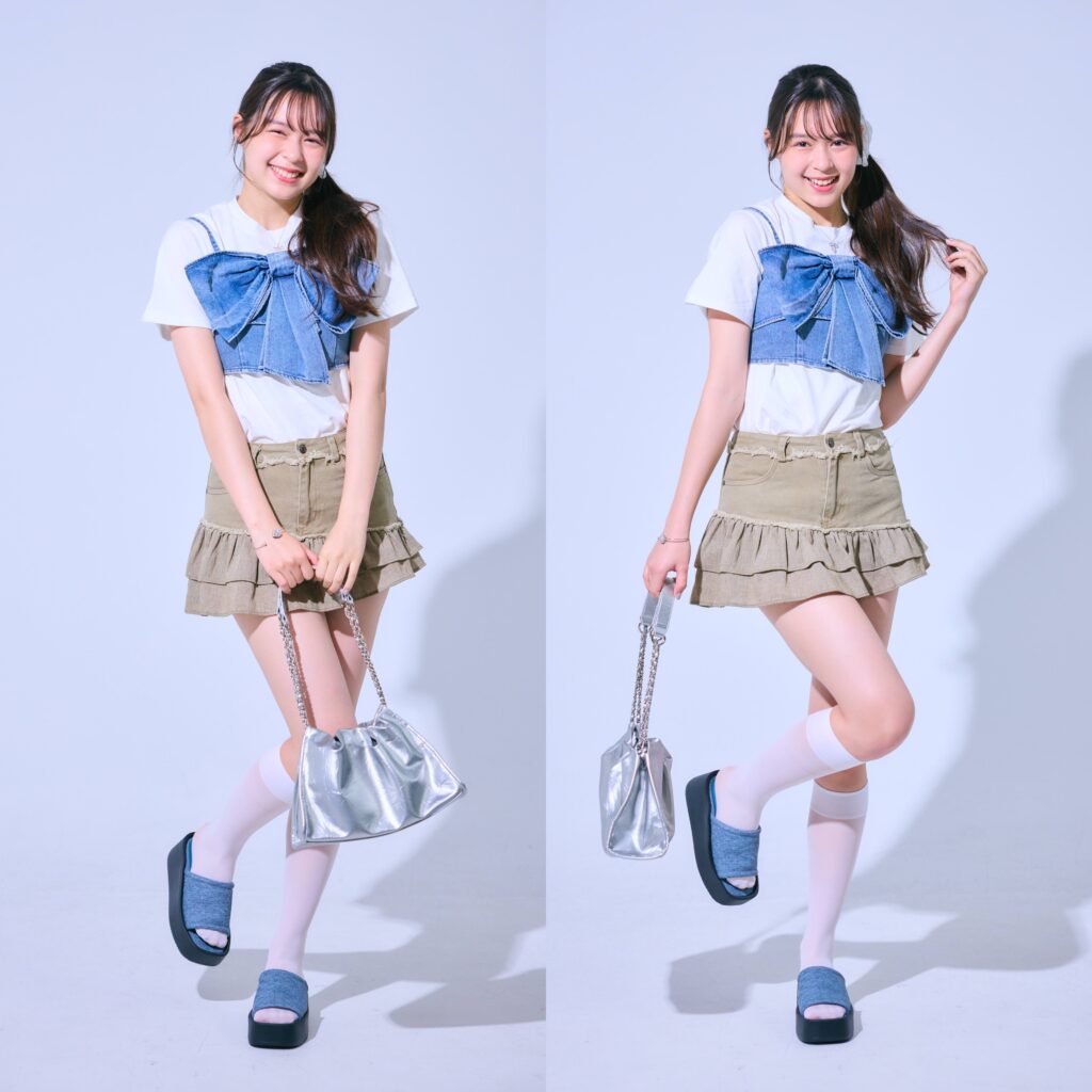 デニム×リボンビスチェを主役にした夏のカジュアルガーリー