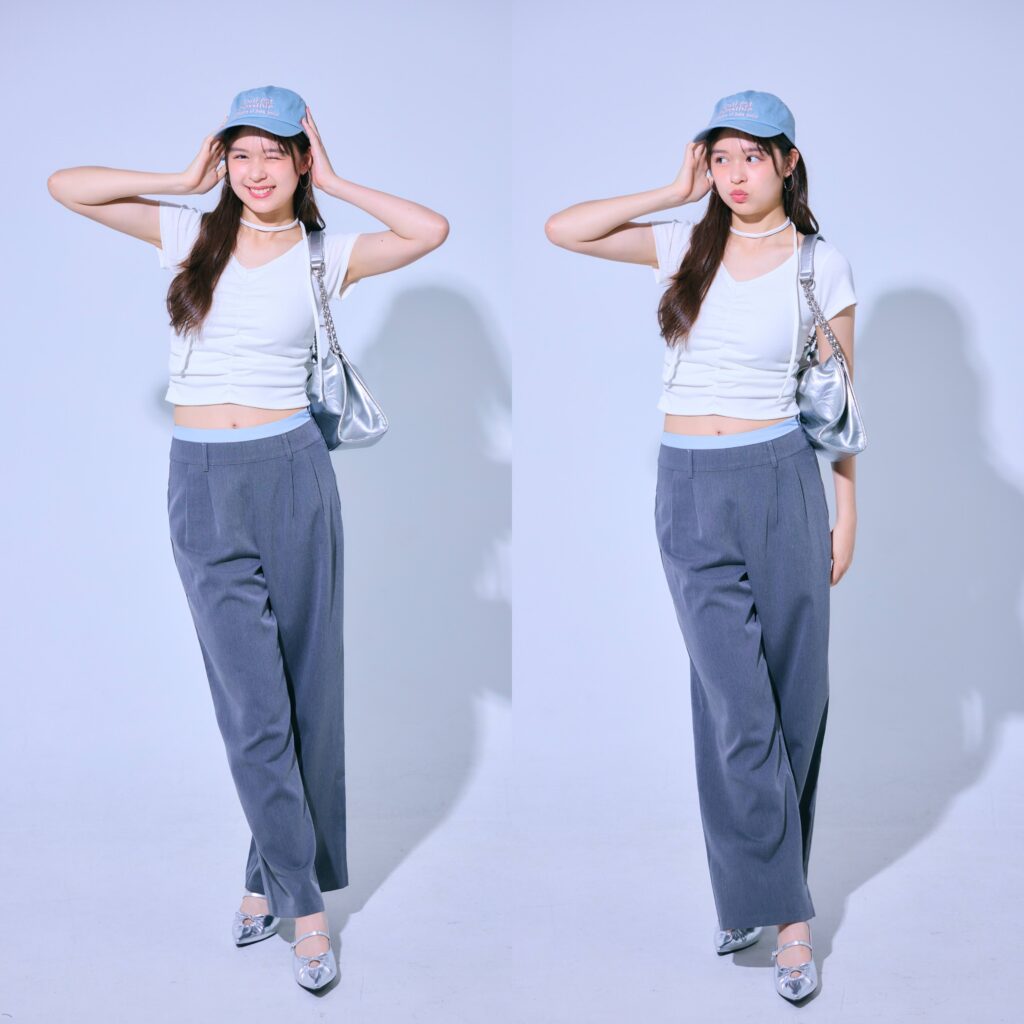 白トップス×グレーパンツで夏のかっこいいスタイル完成!