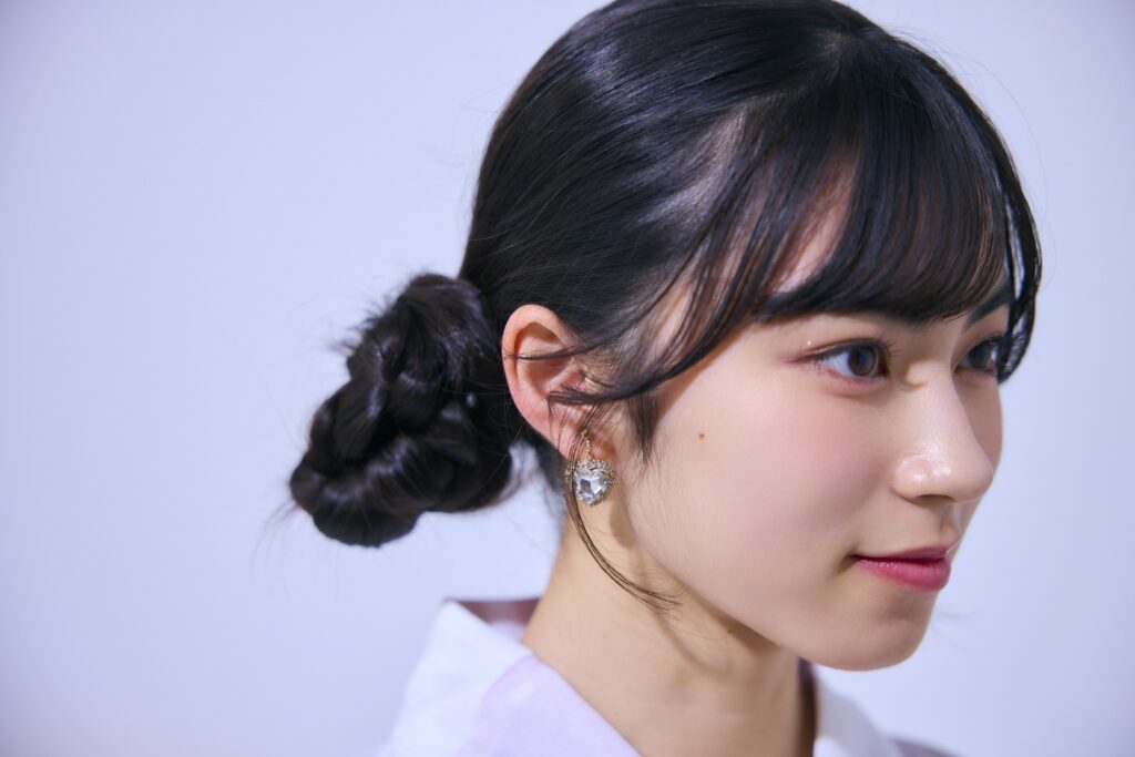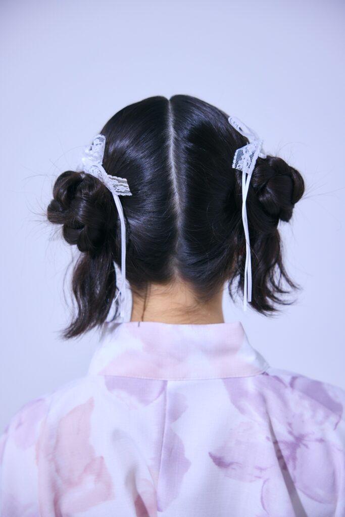 漫画やアニメで儚いキャラの髪型ということが由来で、流行中の“短命ヘア”。低い片サイドポニーが基本だけど、浴衣に合うようスッキリしたおだんごにアレンジ!