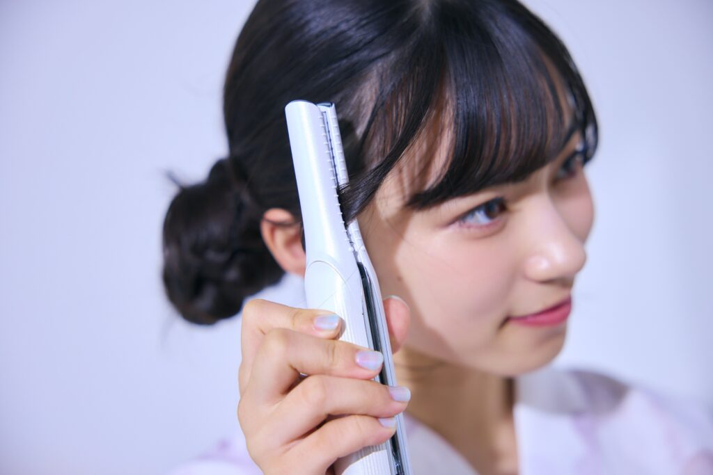 耳前のもみあげ部分のちょろ毛を、ストレートアイロンで内巻きにするよ。この部分と触覚を合わせてS字にすると儚さUP!最後にシュシュをつけて完成。