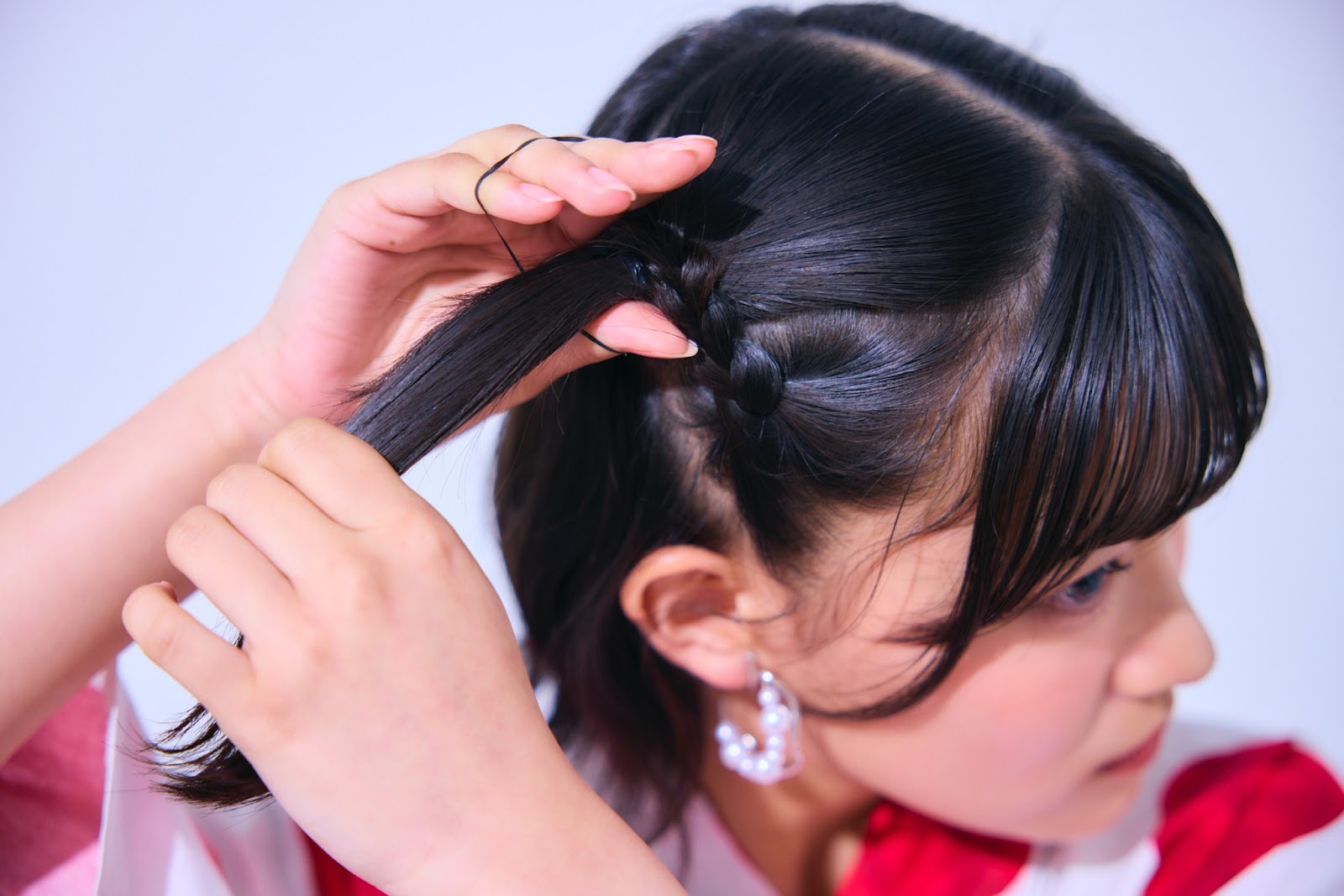 ③サイドの下側をみつあみに!