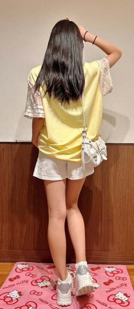 なので、大好きなレモンイエローのシャツと、白のショートパンツ、そして歩きやすくて可愛い白スニーカーを合わせてみたよ✨