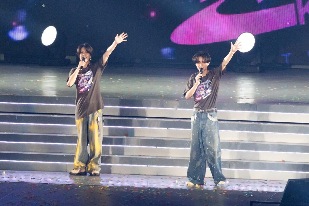 会場からカミナリにも負けない、嵐のような歓声が起こったのは、ミッキーマウスサプライズ登場の瞬間!「みんな、楽しんでる~?」と、ふたりとハイタッチして花道に飛び出し、手を振る姿が超絶ラブリー♡ ここでは新曲「What We Got ~奇跡はきみと~」がミッキーの新オフィシャルテーマソングに決定し、ディズニープラスにて8月1日(金)より世界同時独占配信開始されることをステージで発表。製作裏の舞台裏やMVのフルバージョンも見られるディズニープラスをぜひチェックしてね!