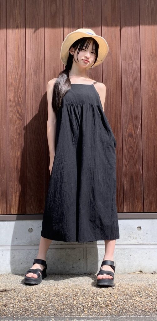 かき氷をこぼしてもイカ焼きのタレがついてもまぁなんとかなるブラックワンピで
