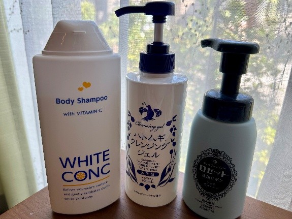 1番左のは、ボディーソープ WHITE CONCを使ってるよ